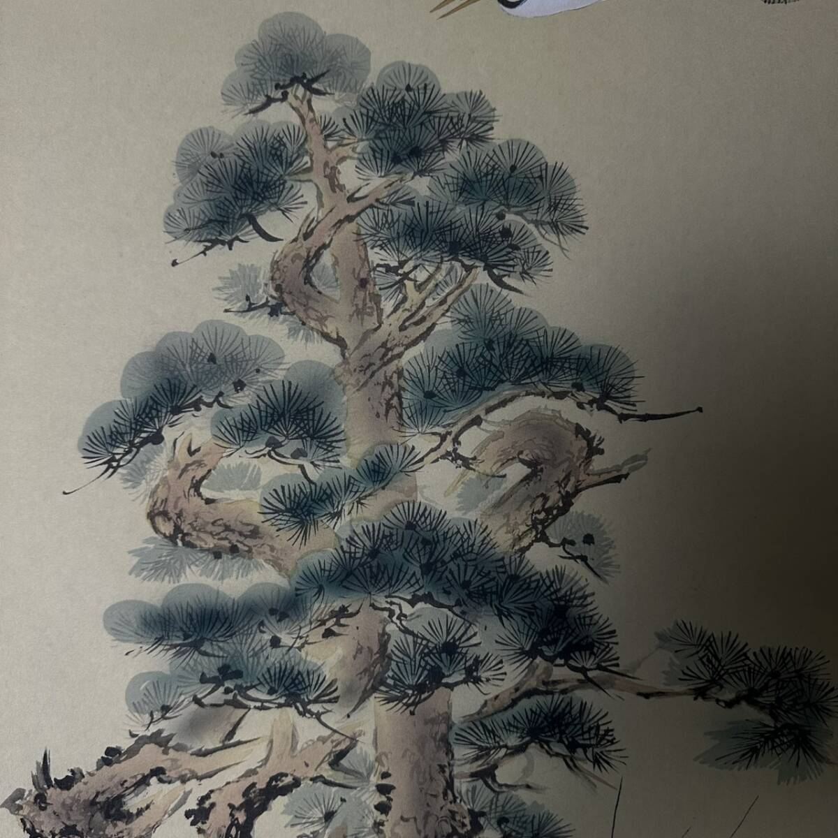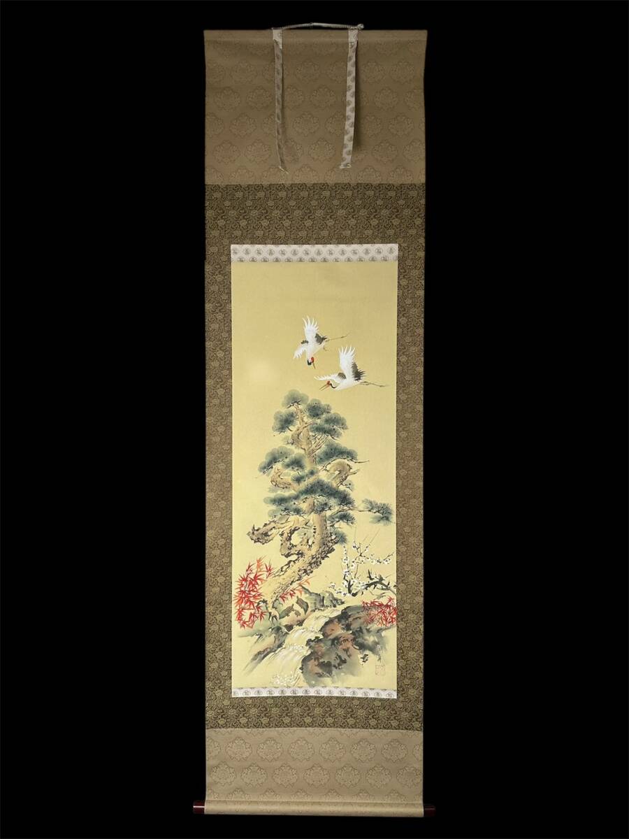 コレクター買取品 掛軸 三輪湖舟筆 【松竹梅鶴亀】 絹本 在銘 落款 共箱 福寿 日本画 肉筆 時代物 z-6