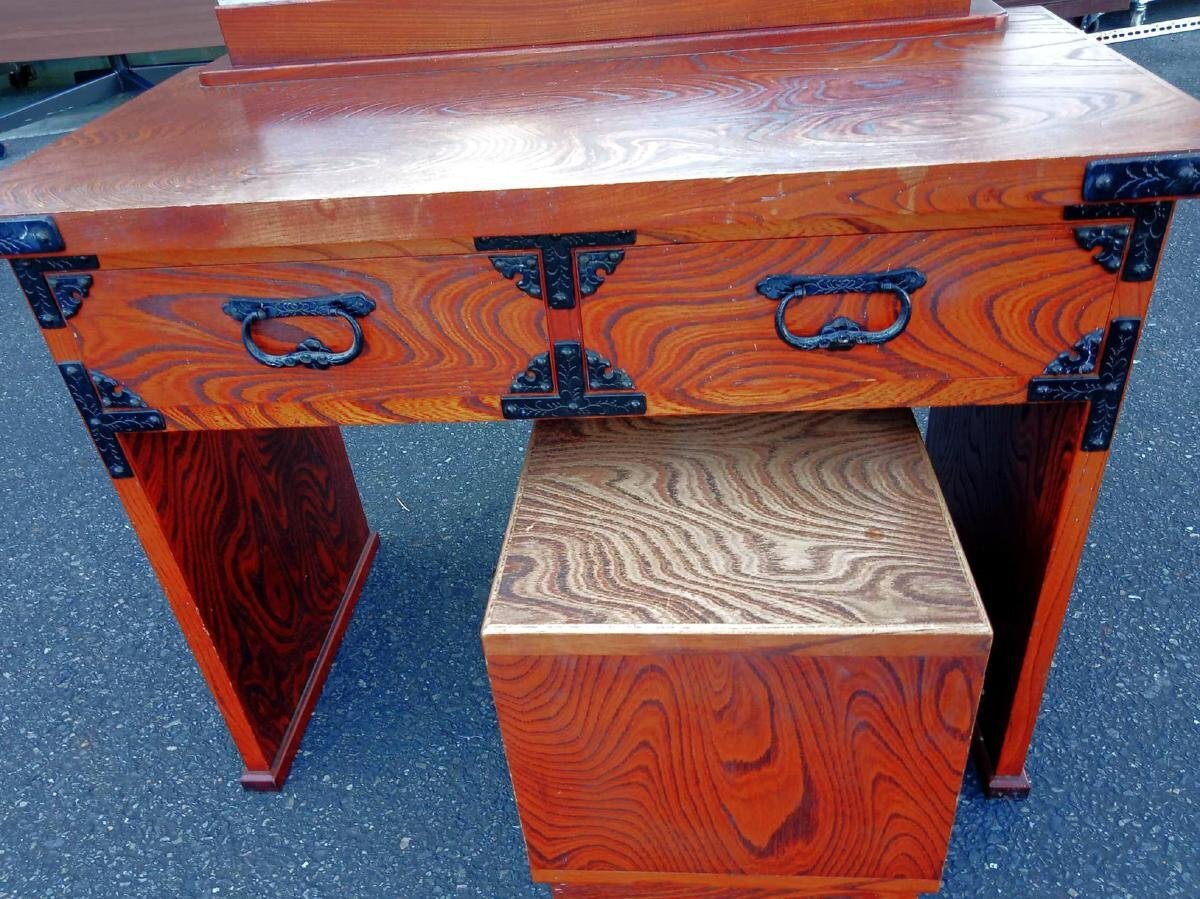 ▼商品名 | 民芸家具 鏡台 ドレッサー スツール付き 全高128cm [直接引取限定 福島県須賀川市 須賀川店] |