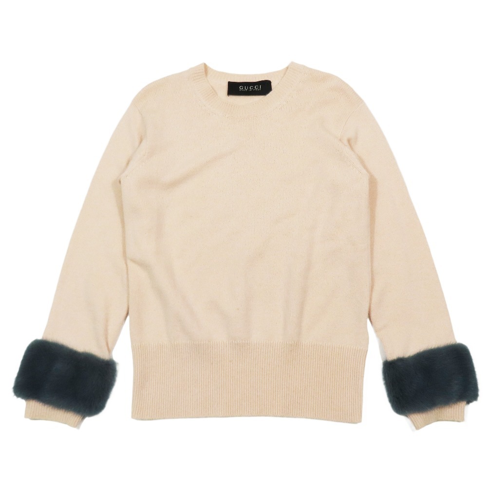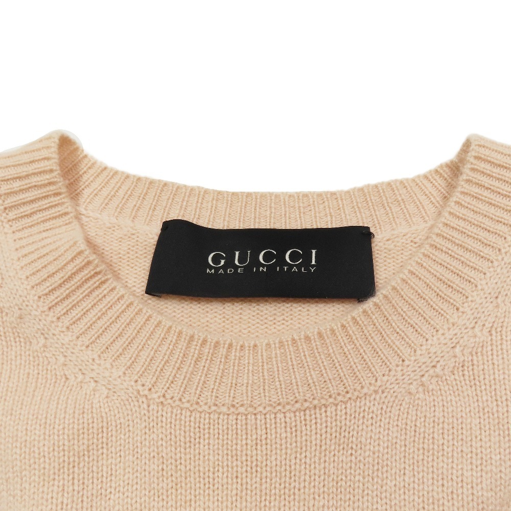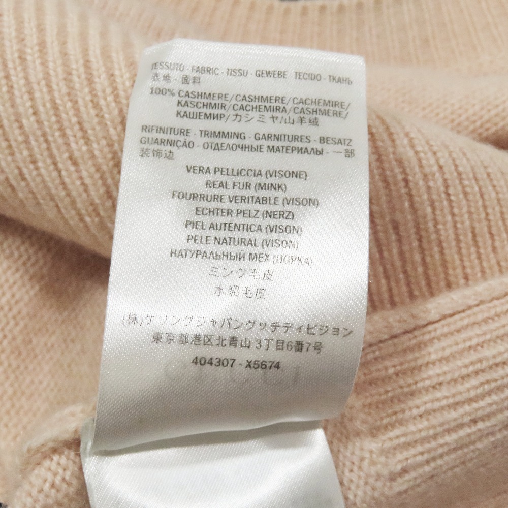 美品 GUCCI グッチ カシミヤ100% ニット セーター 長袖 クルーネック カットソー ミンクファー L ライトピンク