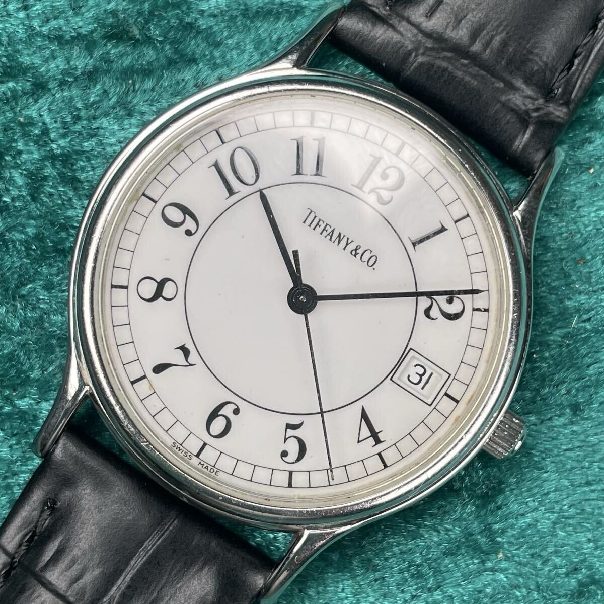 ビンテージ TIFFANY&Co. ティファニー クラシックデイト メンズ QZ アラビア数字文字盤 ガラスキズ無し 綺麗
