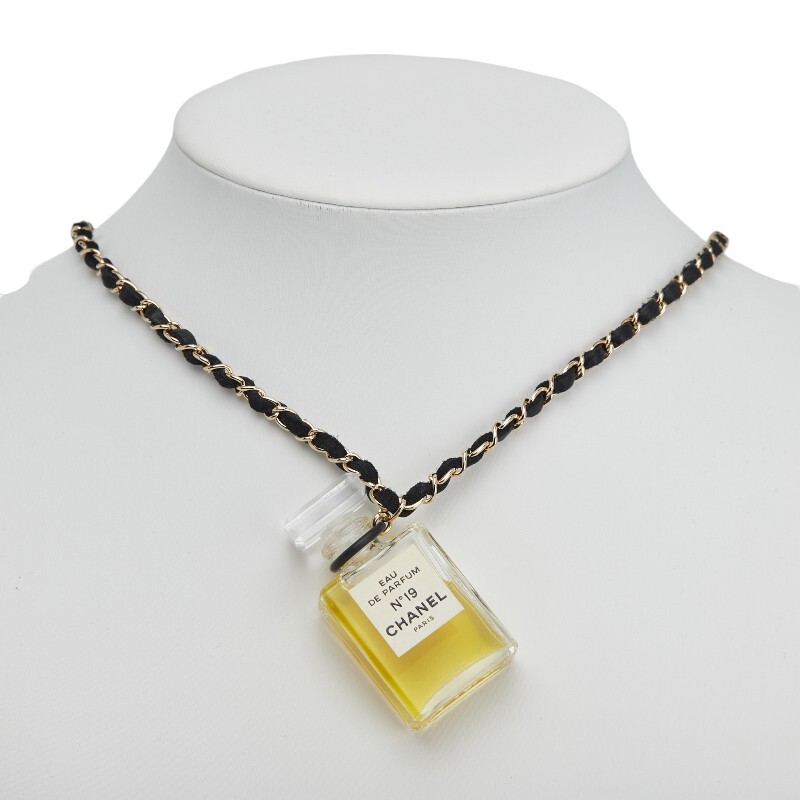 シャネル No19 香水 オードパルファム ネックレス ゴールド ブラック メッキ レザー レディース CHANEL 【中古】