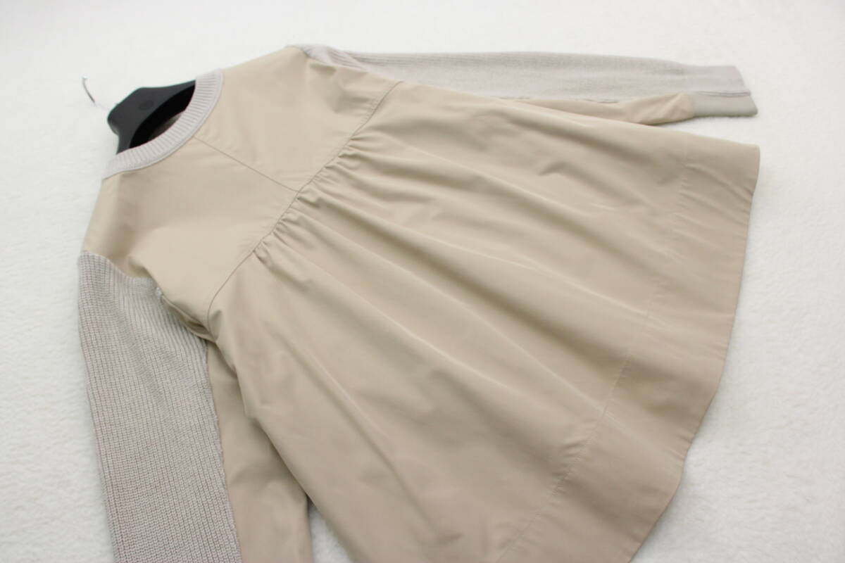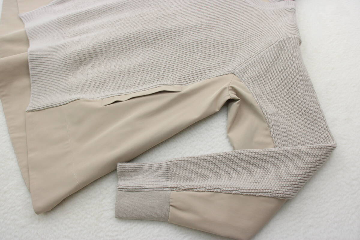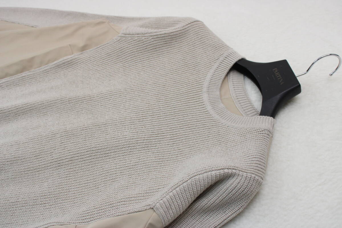 4934 新品 畔編みニット切替プルオーバー ベージュFサイズ