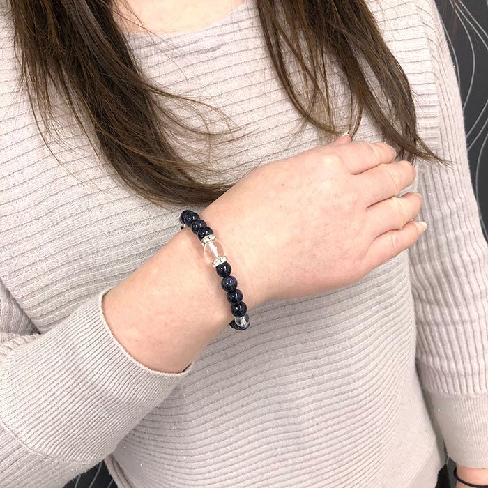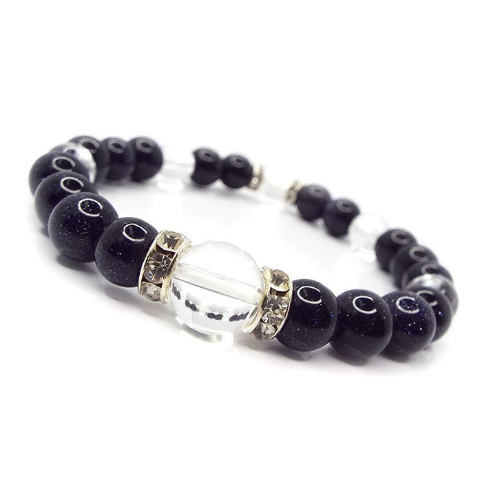 【STONE KITCHEN 天然石 パワーストーン】 上品な藍色の中に輝くゴールドの粒子が美しいブルーゴールドストーン。 その姿はまるでどこまでも広がる宇宙のよう!!! 水晶と合わせたブレスレットは、セレブな雰囲気を求める方におすすめです☆ 異なる2種の輝きが貴女の気分を高めてくれます♪ 夜空いっぱいに散りばめられた星がまたたいているかのような不思議なパワーストーン。 心身のバランスを崩したり、精神的に疲れてしまった時に その疲労を取り除いてくれると云われています。 持ち主の意志を強くし、自分自身を受け入れられるように成長させてくれます。 何か新しいことを始める時には、パワーを与えてくれるとも云われています♪ 内周:約17cm 玉サイズ:水晶 約10mm・約8mm ブルーゴールドストーン 約8mm 1点 注意事項 ※金属部分は汗や汚れ等で変色する場合がございます。気になる場合は 金属磨きや布等で軽くふき取る事をおすすめします。 ※石の種類によっては、艶を引き出すことを目的として、ワックスや着色加工がされているものもあります。 ※表示のサイズは必ずしも最大値・最小値のサイズのものが入っているわけではございません。 ※天然石のため同じものでも色味・模様などが異なります。 ※照明の具合で実際とは色合いが異なる場合がございます。 また、天然素材特有のクラック・内包物を有する場合がございます。予めご了承下さい。 | |