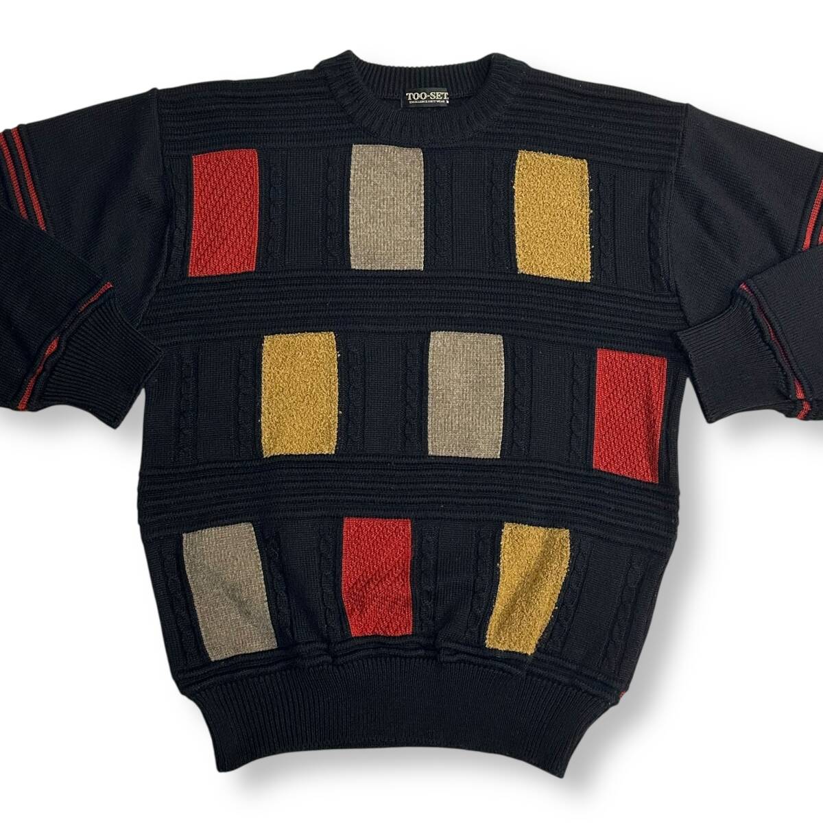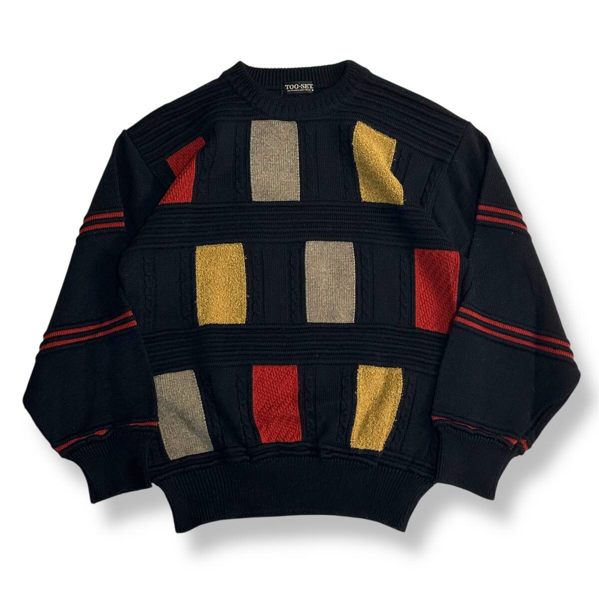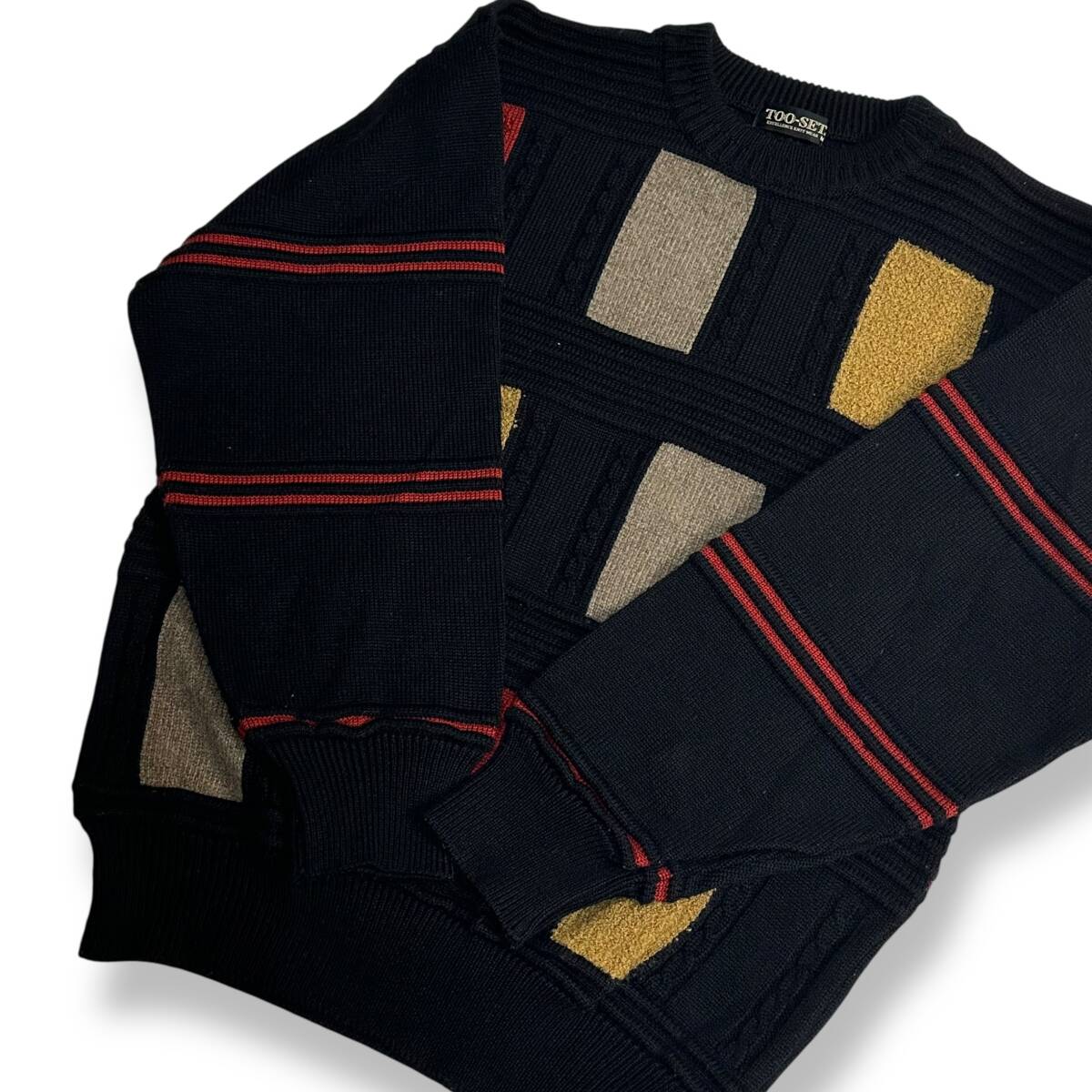 秀逸 レア【TOO-SET】VINTAGE 80s 90s パネル&ボーダー ビンテージレトロニット 古着ミックス 日本製 クルーネックセーター