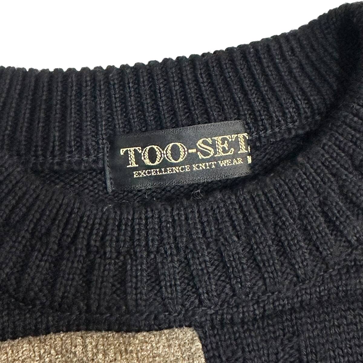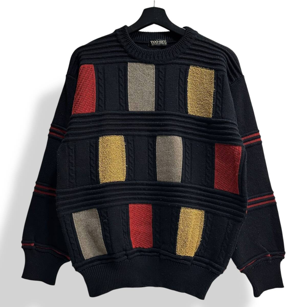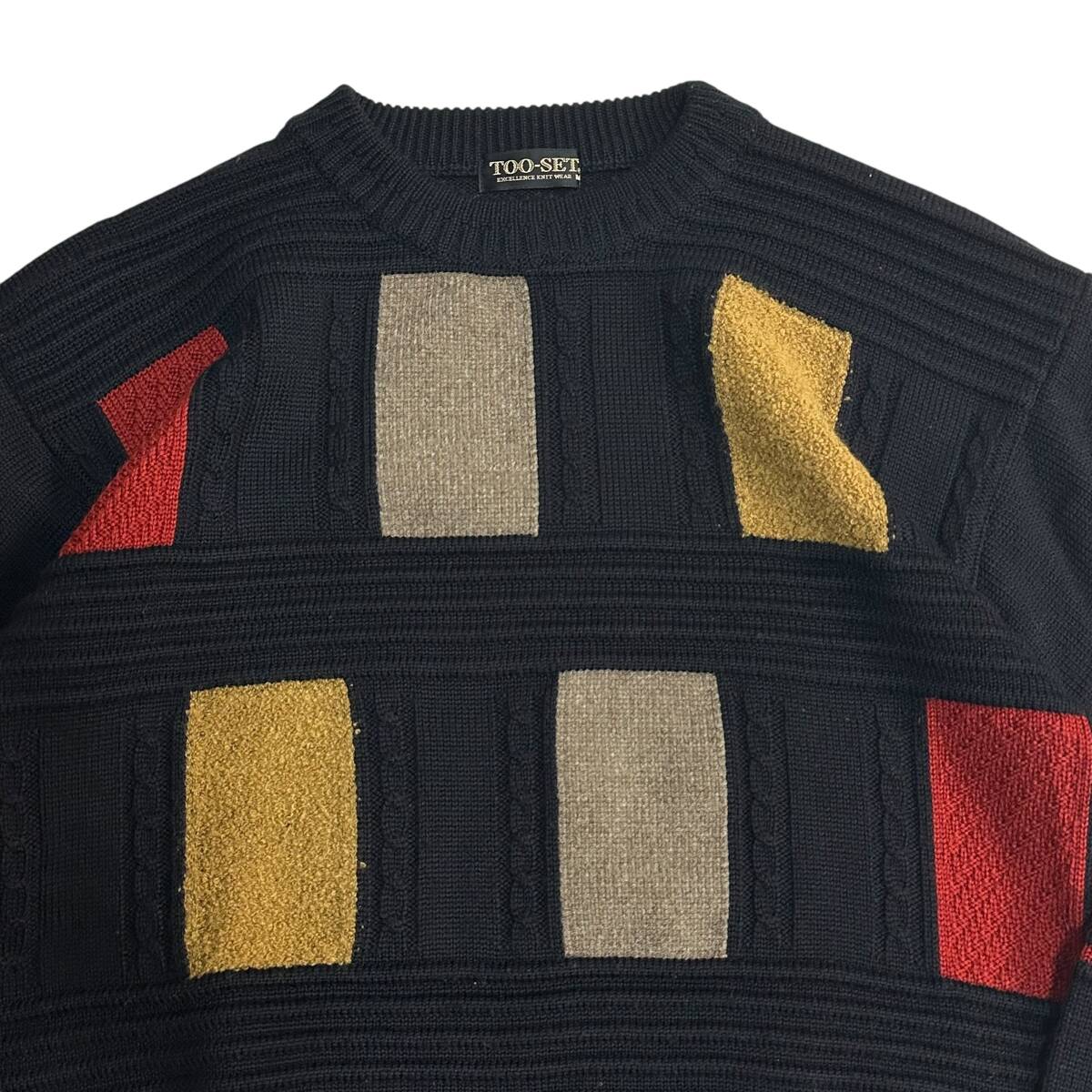 秀逸 レア【TOO-SET】VINTAGE 80s 90s パネル&ボーダー ビンテージレトロニット 古着ミックス 日本製 クルーネックセーター