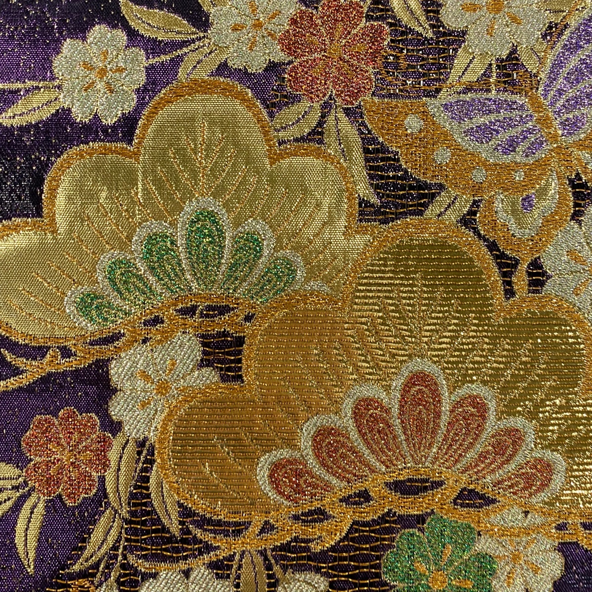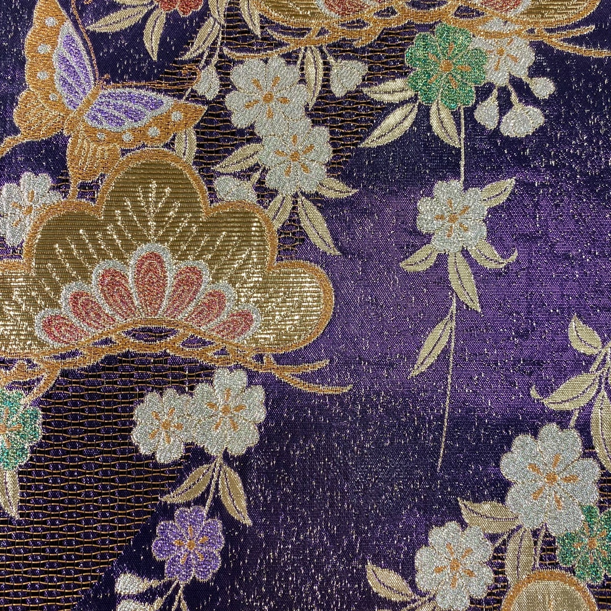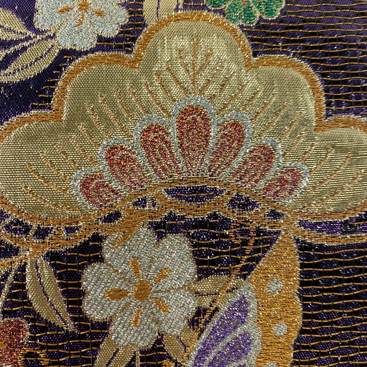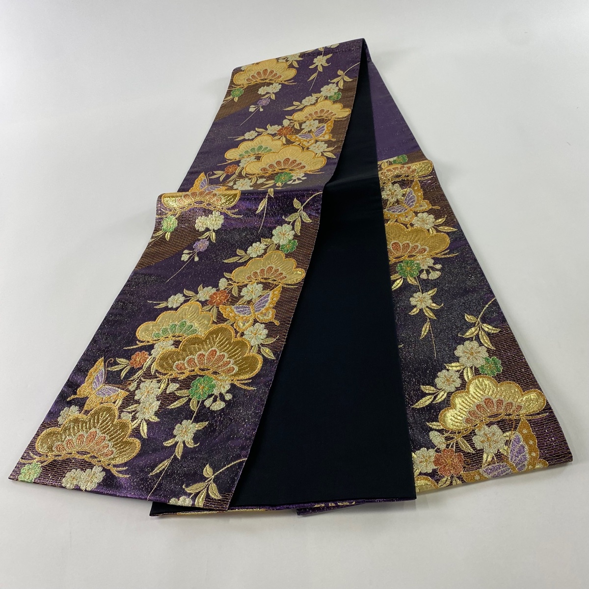 | 袋帯 美品 秀品 振袖向き 蝶 笠松 金糸 箔 紫 六通 正絹 【中古】 |