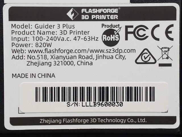 商品説明 | (美品) FLASHFORGE 3Dプリンター Guider 3 plus 動作良好 A4709[21-1-1-A]:925502 | ||||||||||||||||||||||
