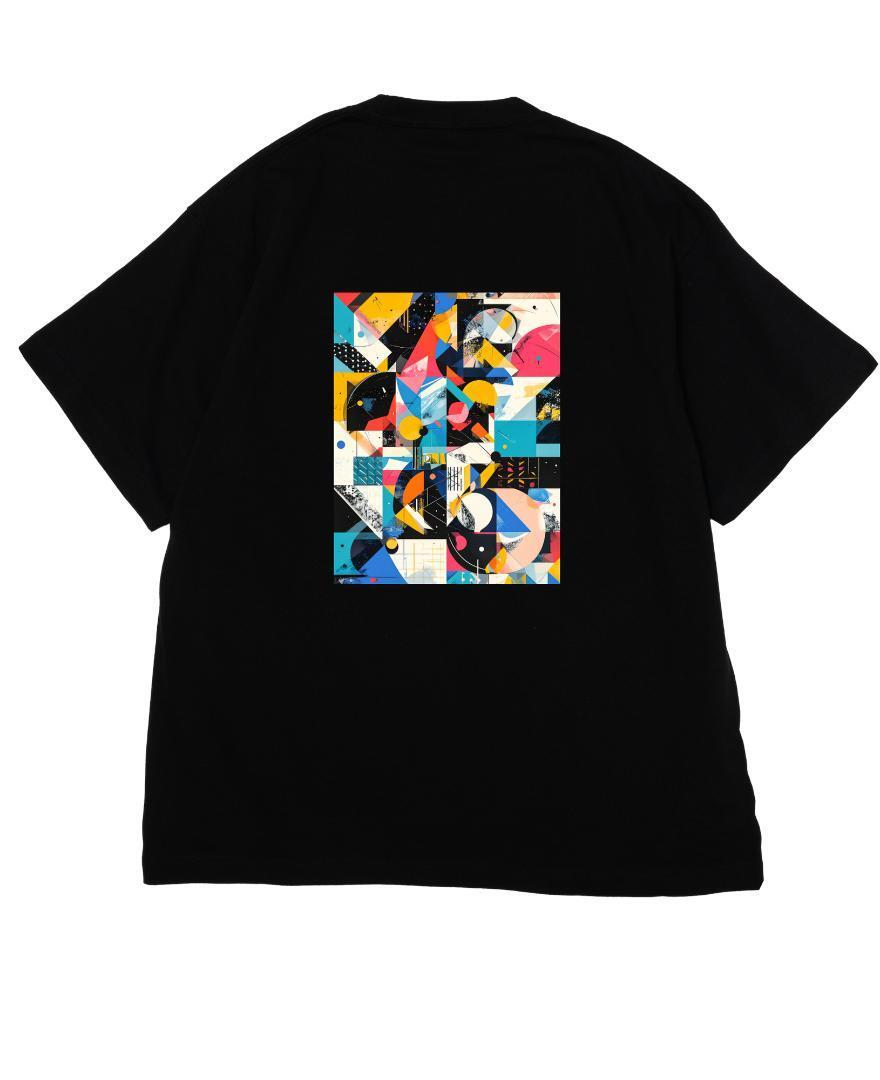 カラフルな抽象アートデザインが映える黒Tシャツ です。