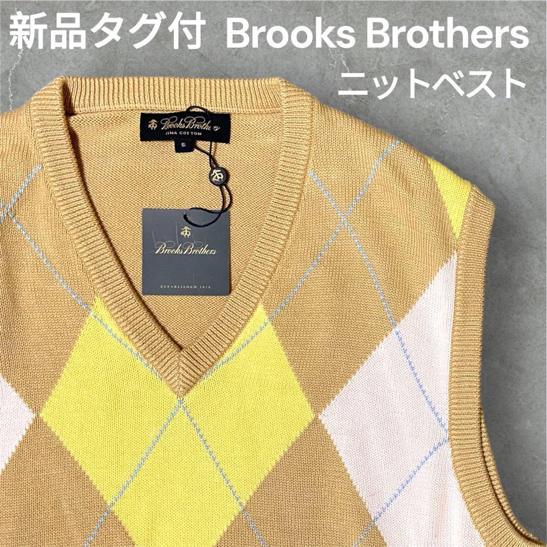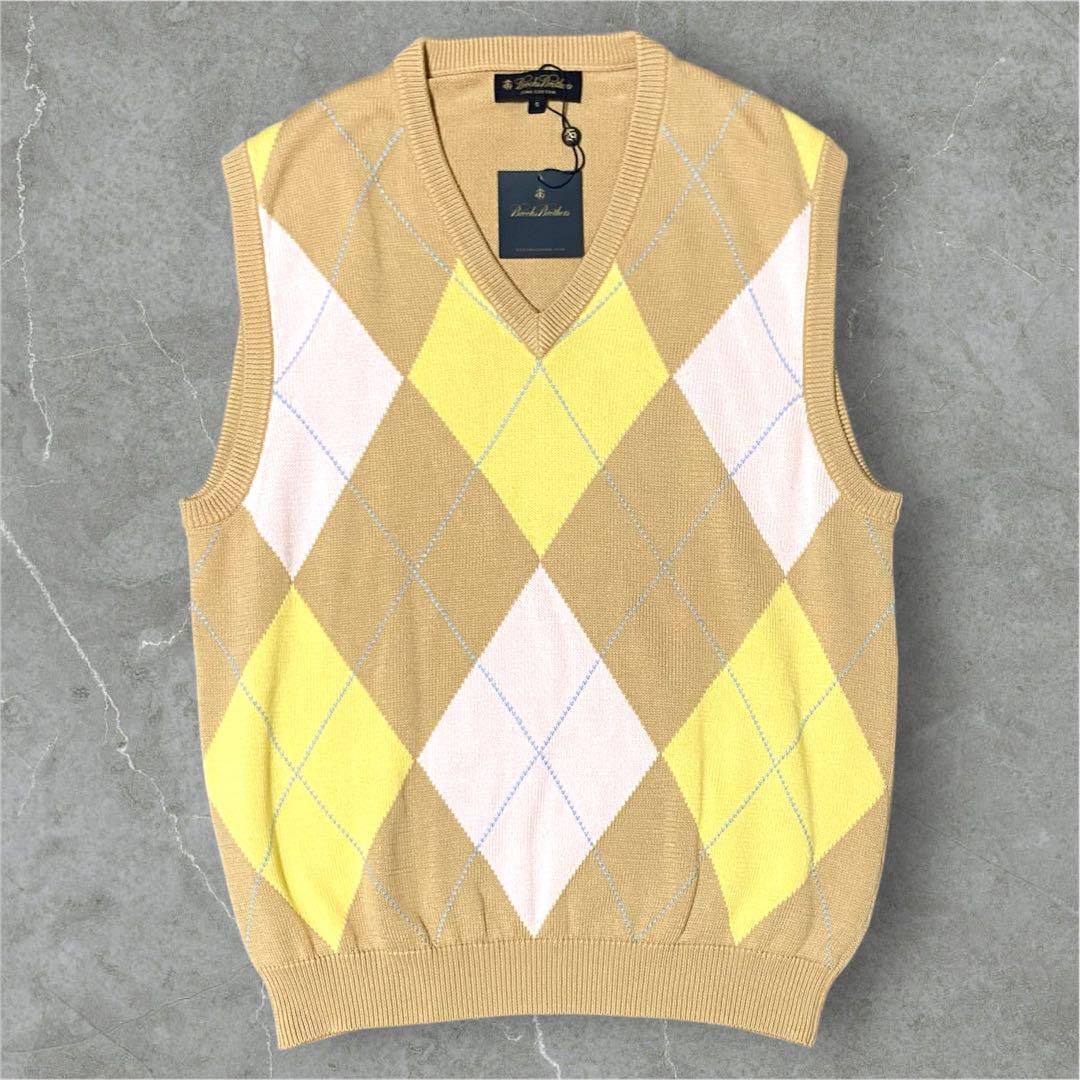 #Brooks#Brothers#ブルックス#ブラザーズ#アーガイル#ニット#ベスト#ベージュ#ピンク#水色#ダイヤモンド#タグ付#新品#未使用#S#オフィス#カジュアル#フォーマル#コットン#綿#メンズ#男性