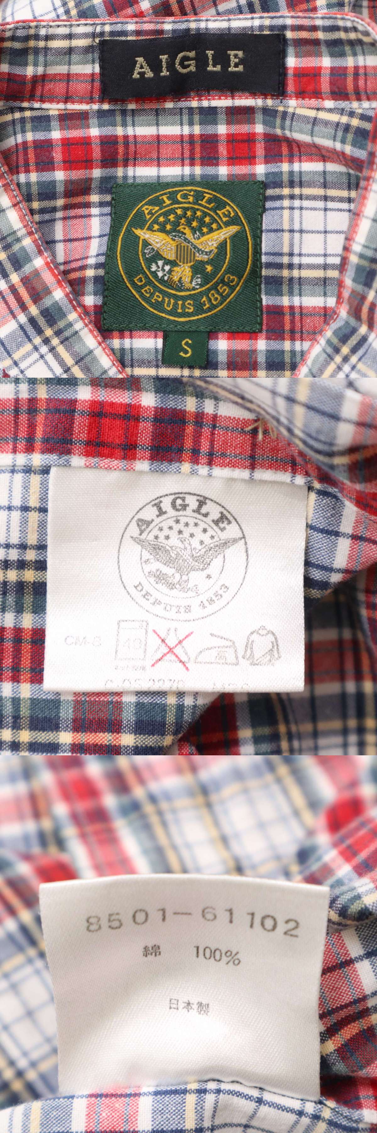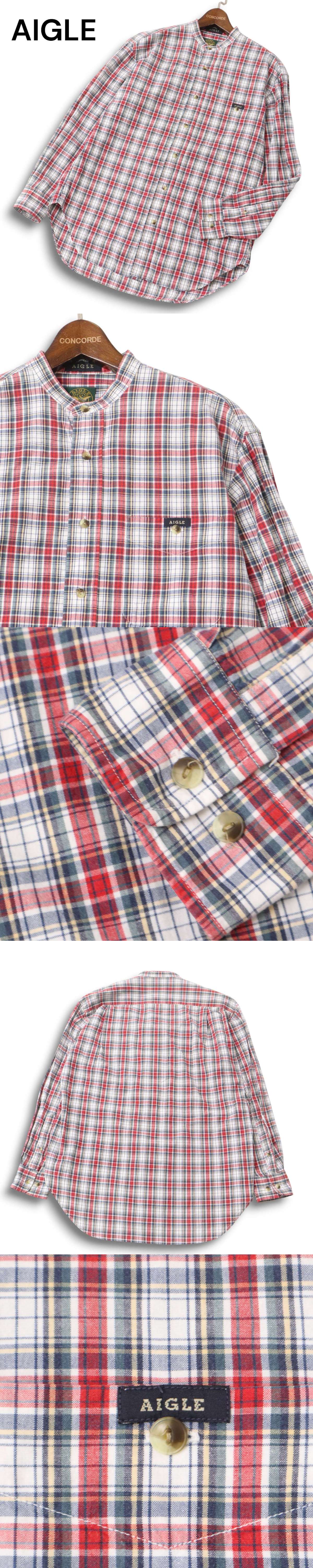 AIGLE エーグル 通年 ロゴ★ 長袖 バンドカラー チェック シャツ Sz.S メンズ アウトドア 日本製