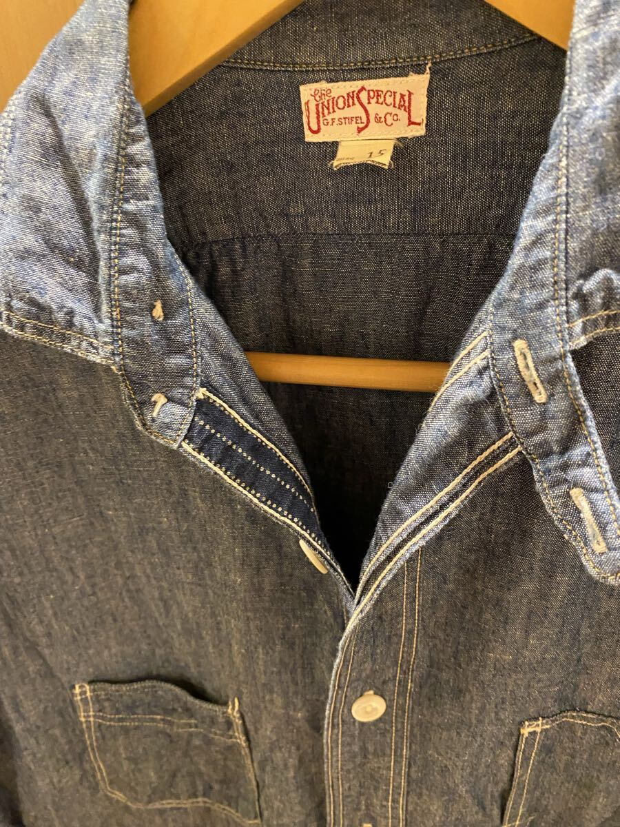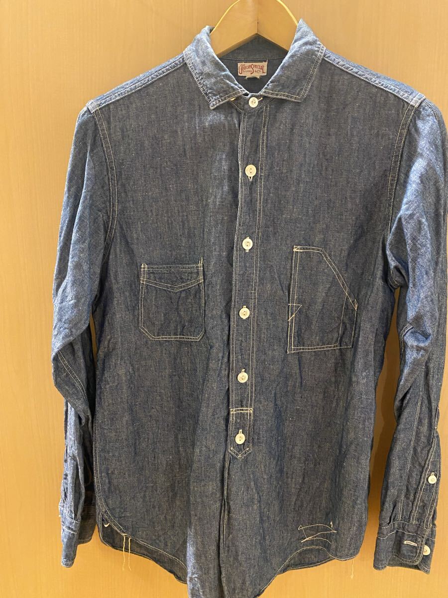 裏にウォバッシュ生地をあてがったり凝りまくっためちゃくちゃカッコ良いシャンブレーシャツです。