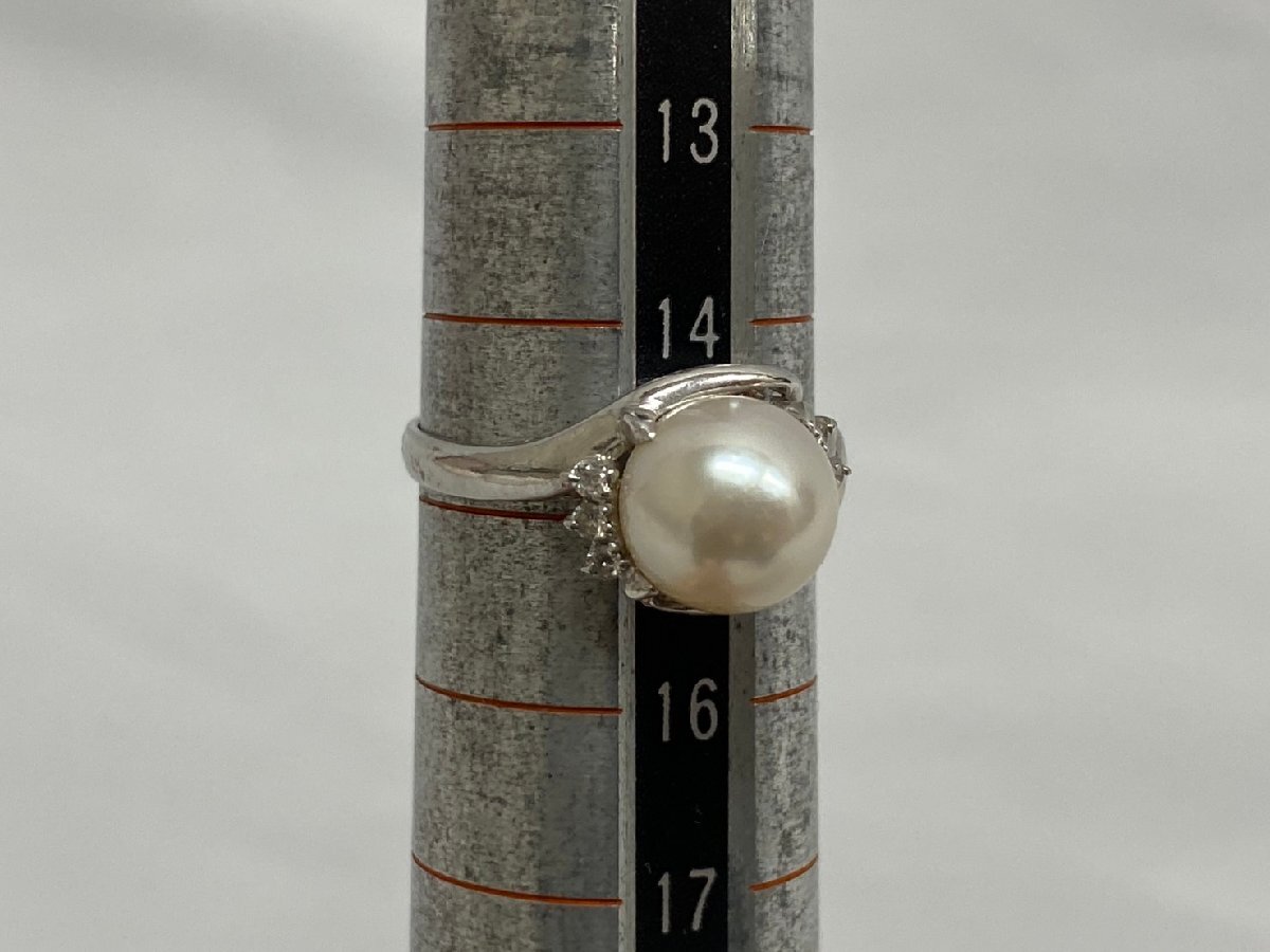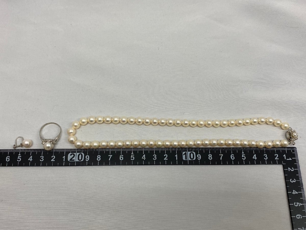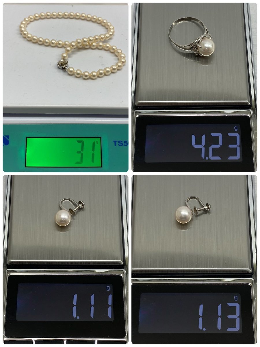 ◇◇真珠 3点セット ネックレス【Silver留具】・ イヤリング【K14WG】・ リング【Pt900】シルバー 冠婚葬祭◇◇S7681