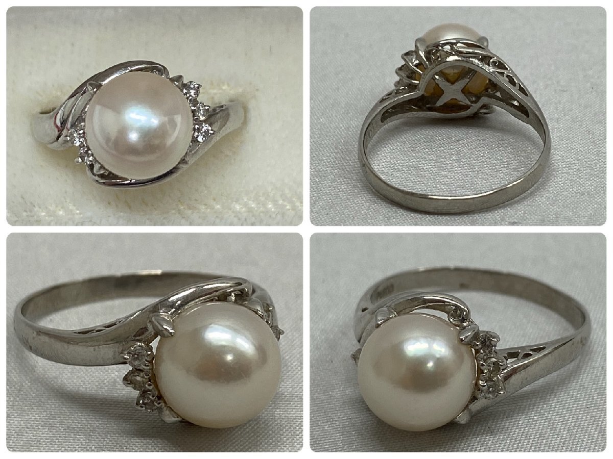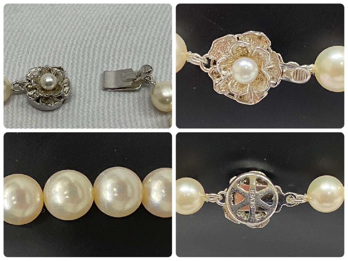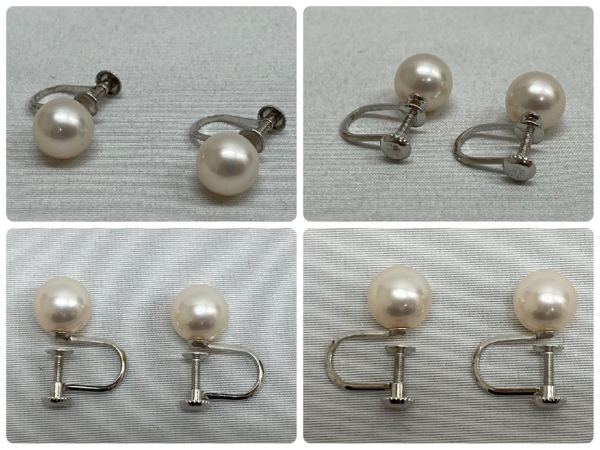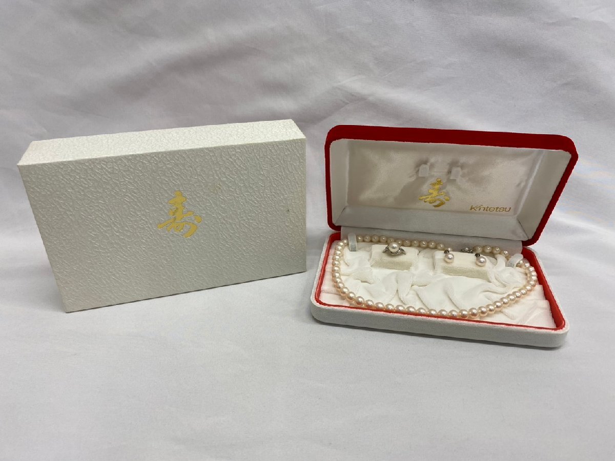 ◇◇真珠 3点セット ネックレス【Silver留具】・ イヤリング【K14WG】・ リング【Pt900】シルバー 冠婚葬祭◇◇S7681