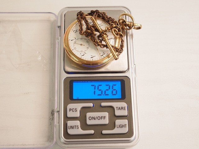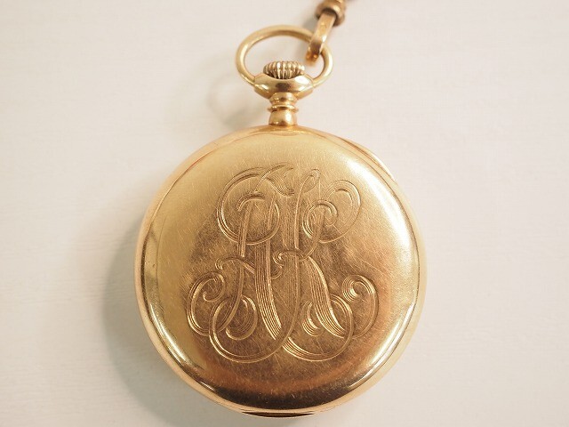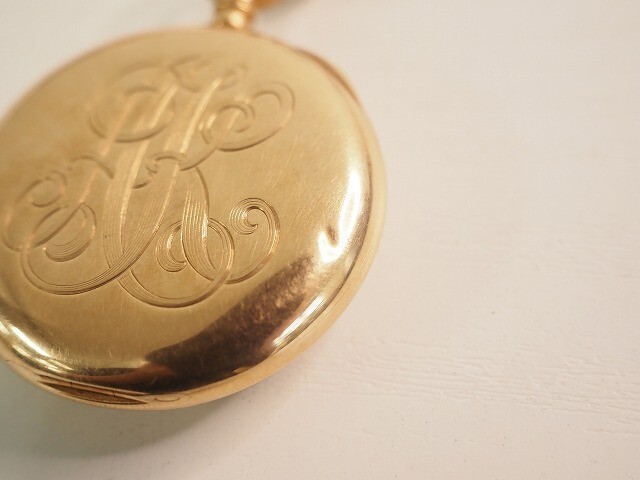 商品名 SHREVE&CO san francisco 14K刻印 重量約63.0g アンティーク 手巻き懐中時計 チェーン付 1128b