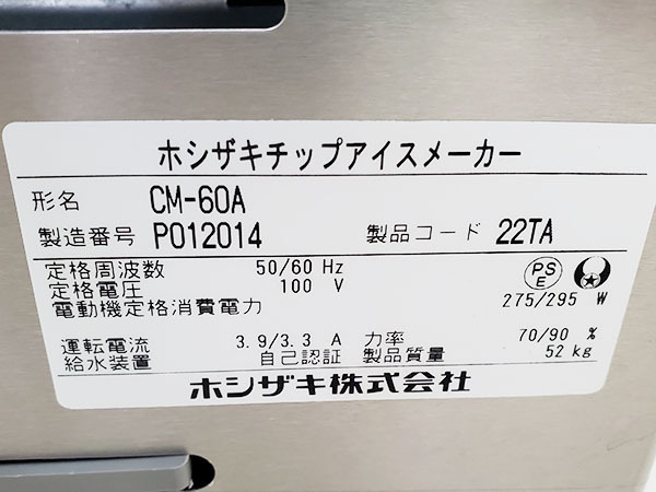 Z655/製氷機/チップアイスメーカー/ホシザキ/CM-60A/100V/アンダーカウンター/2024年製/93万【23区内・横浜市内送料無料】