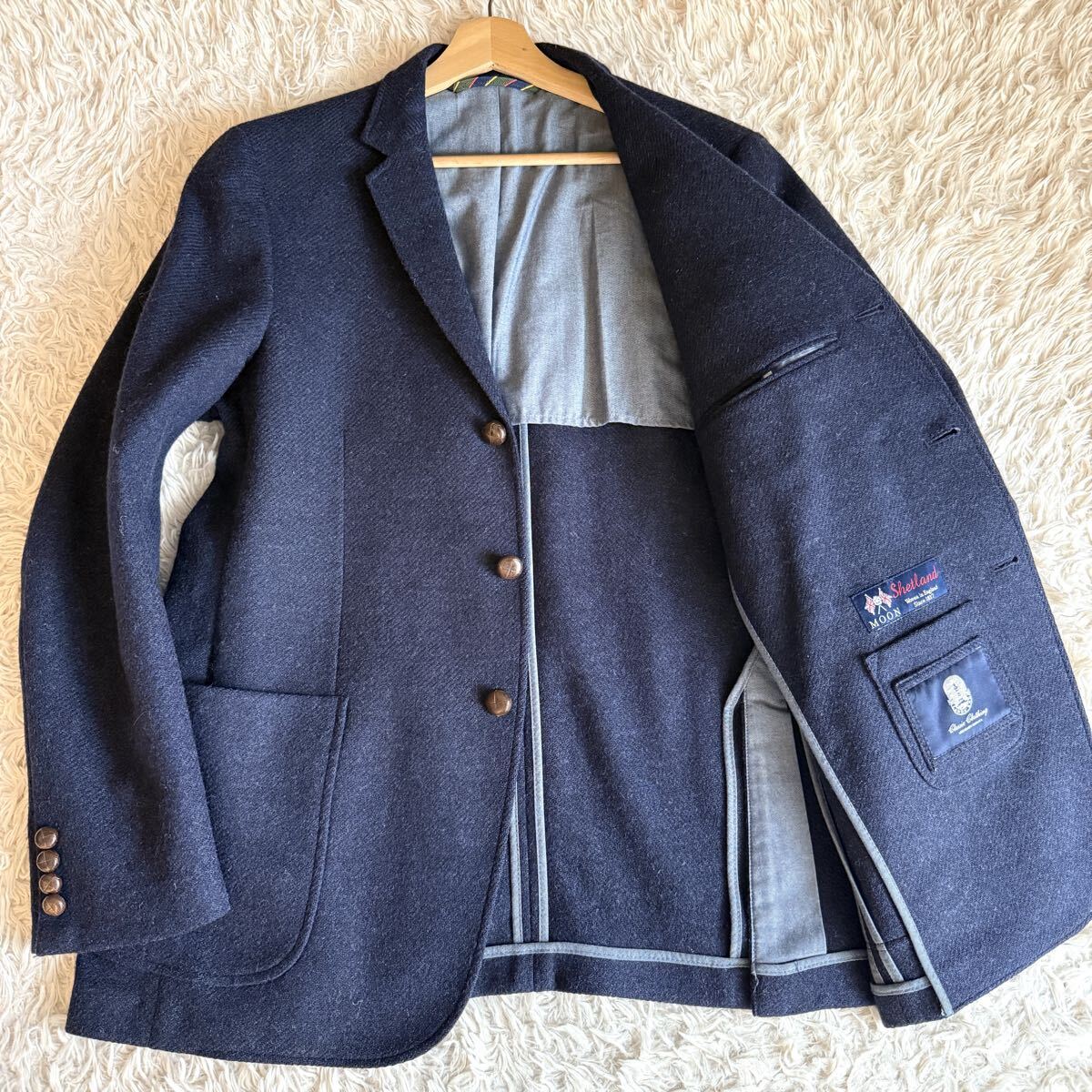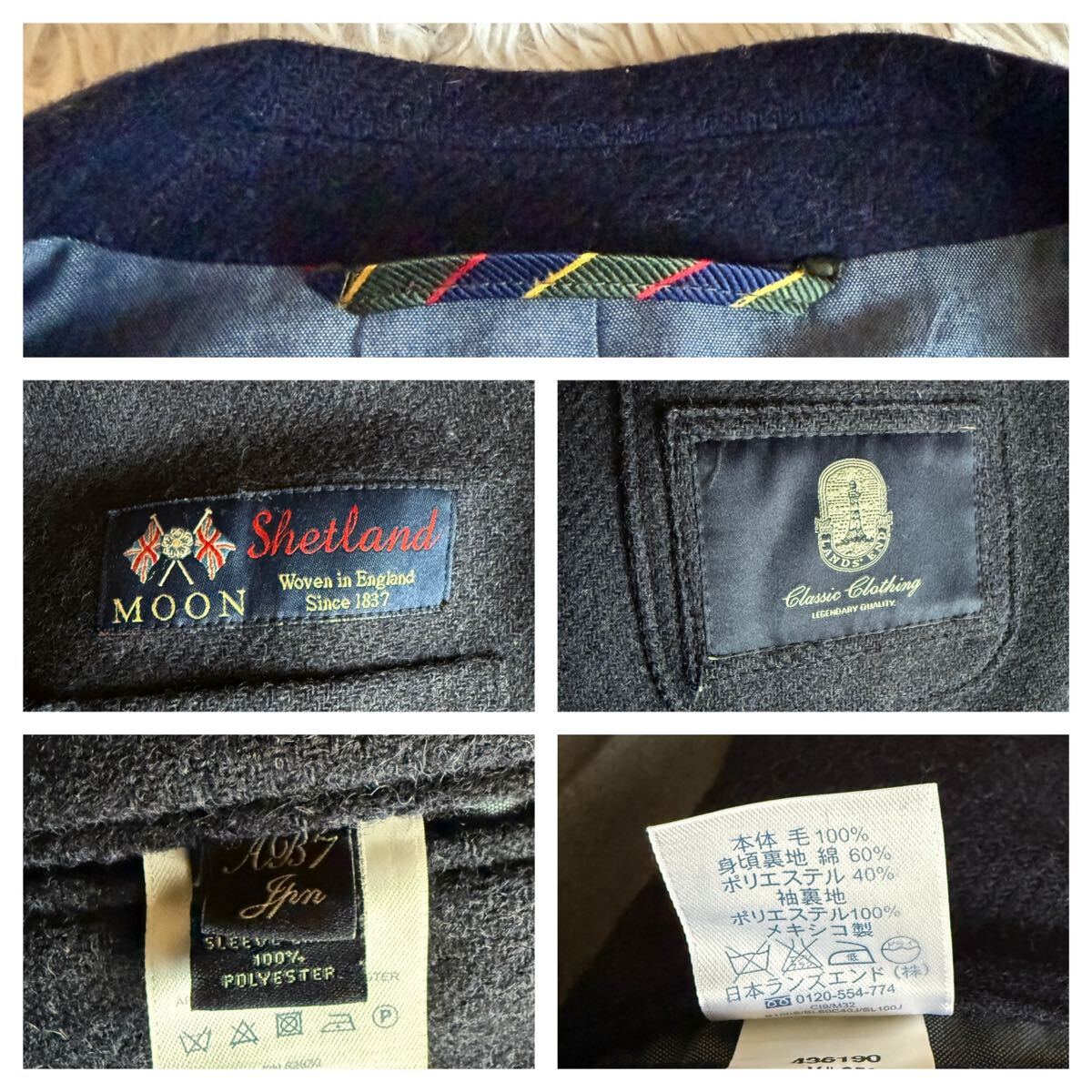 【美品】英国製生地 MOON ランズエンド ★最高級 Shetland tweed ツイードウール 胡桃ボタン テーラードジャケット メンズ AB7 XL相当