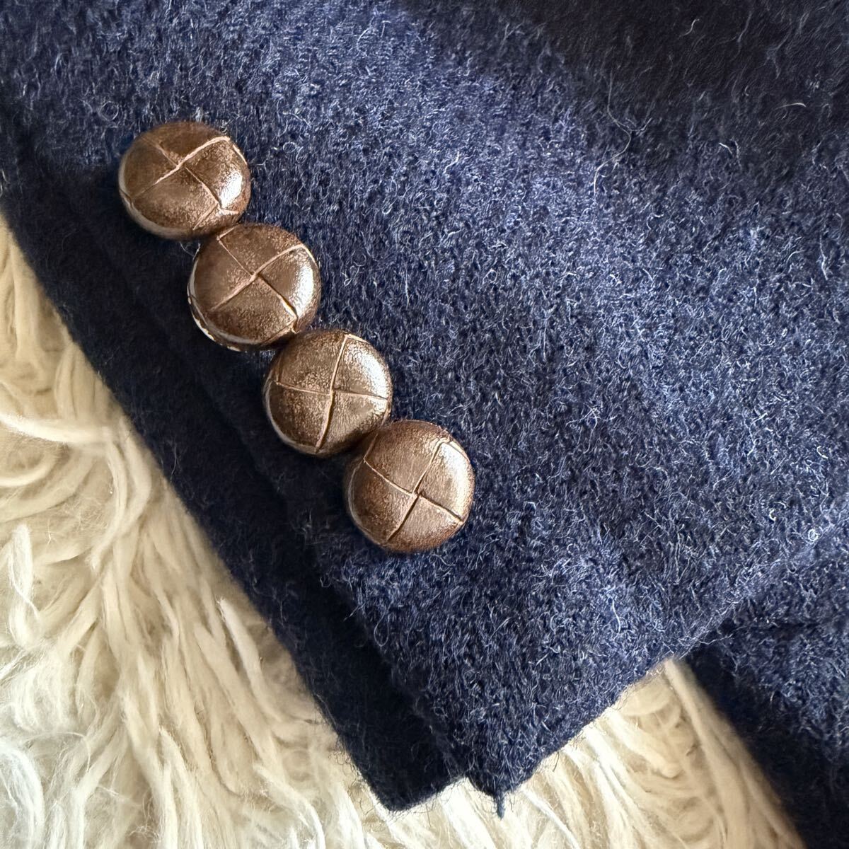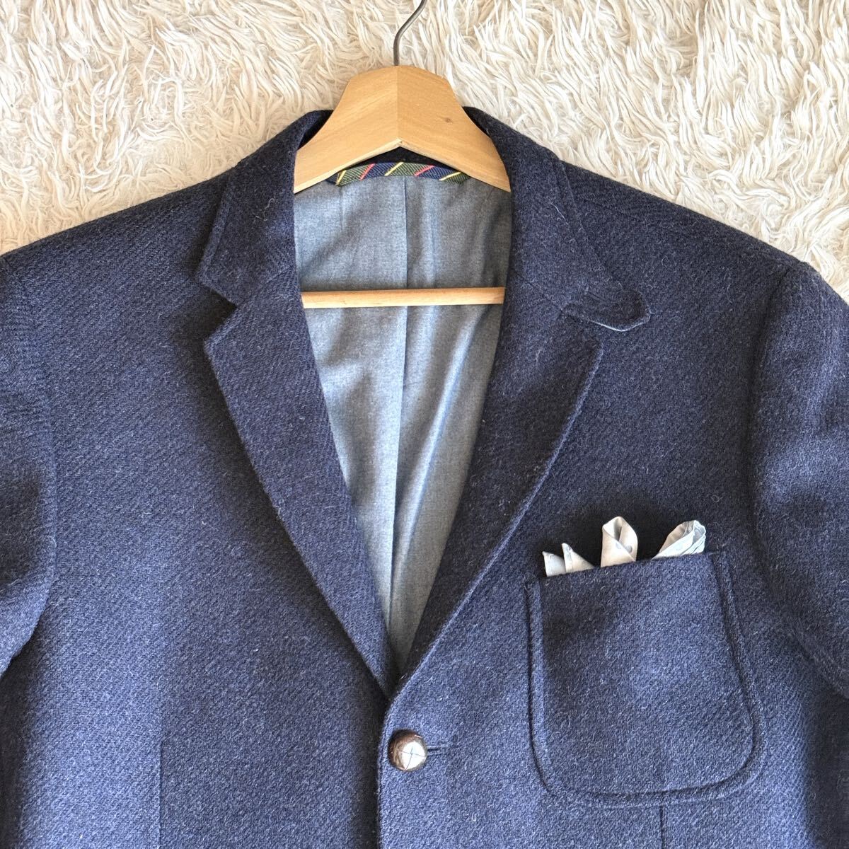 英国製老舗生地メーカーのMOON社の最高級ツイードウール素材で仕立てられており、人気のネイビーカラーでどんなシーンでもご着用頂けます。