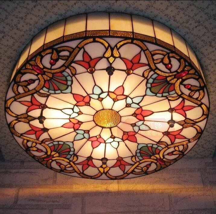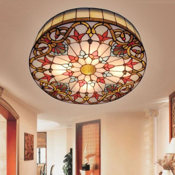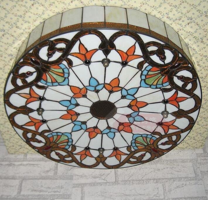 美品 ステンドグラス ペンダントライト 豪華天井照明ステンドグラスランプ ガラス貝工芸品