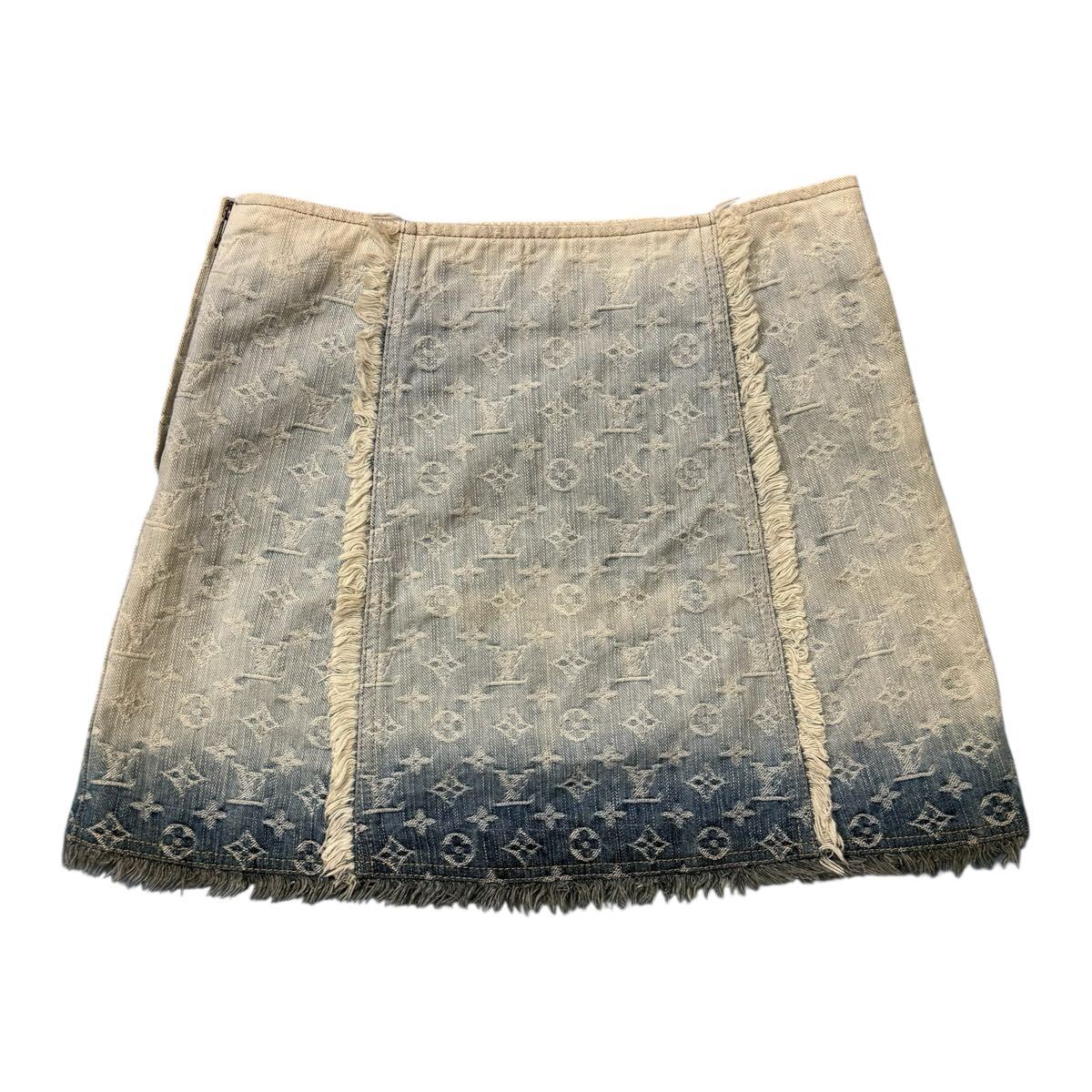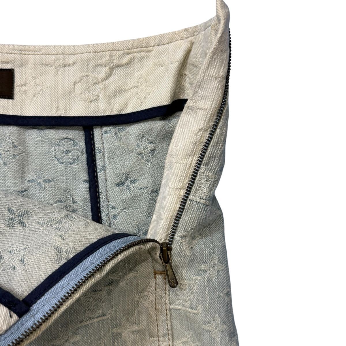 Louis Vuittonを象徴するモノグラムパターンが織り込まれたデニム生地に、丁寧にブリーチ加工が施されたスカートになります。切りっぱなしのフリンジ加工が施された裾と、パネルの切り替え部分は、デニムという素材が持つカジュアルな魅力を最大限に引き出しつつ、どこか反抗的でエッジの効いたストリート感を演出しています。ラグジュアリーとストリート、伝統と革新、相反する要素を巧みに融合させるLouis Vuittonこ核を感じる一品です。