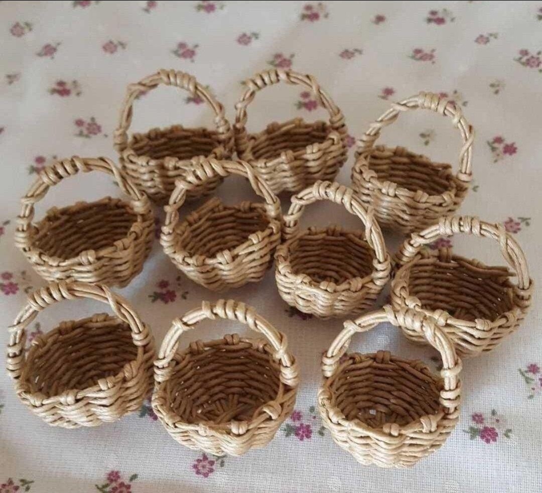 エコクラフトテープで作ったコロンと可愛いミニチュアかごです。