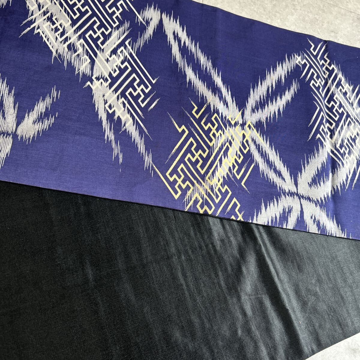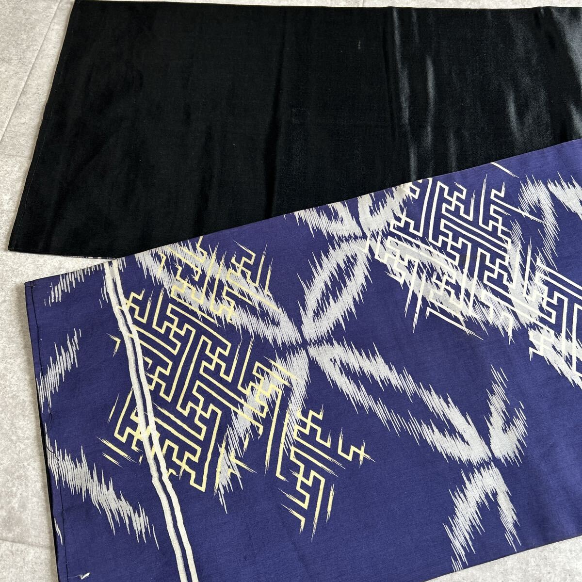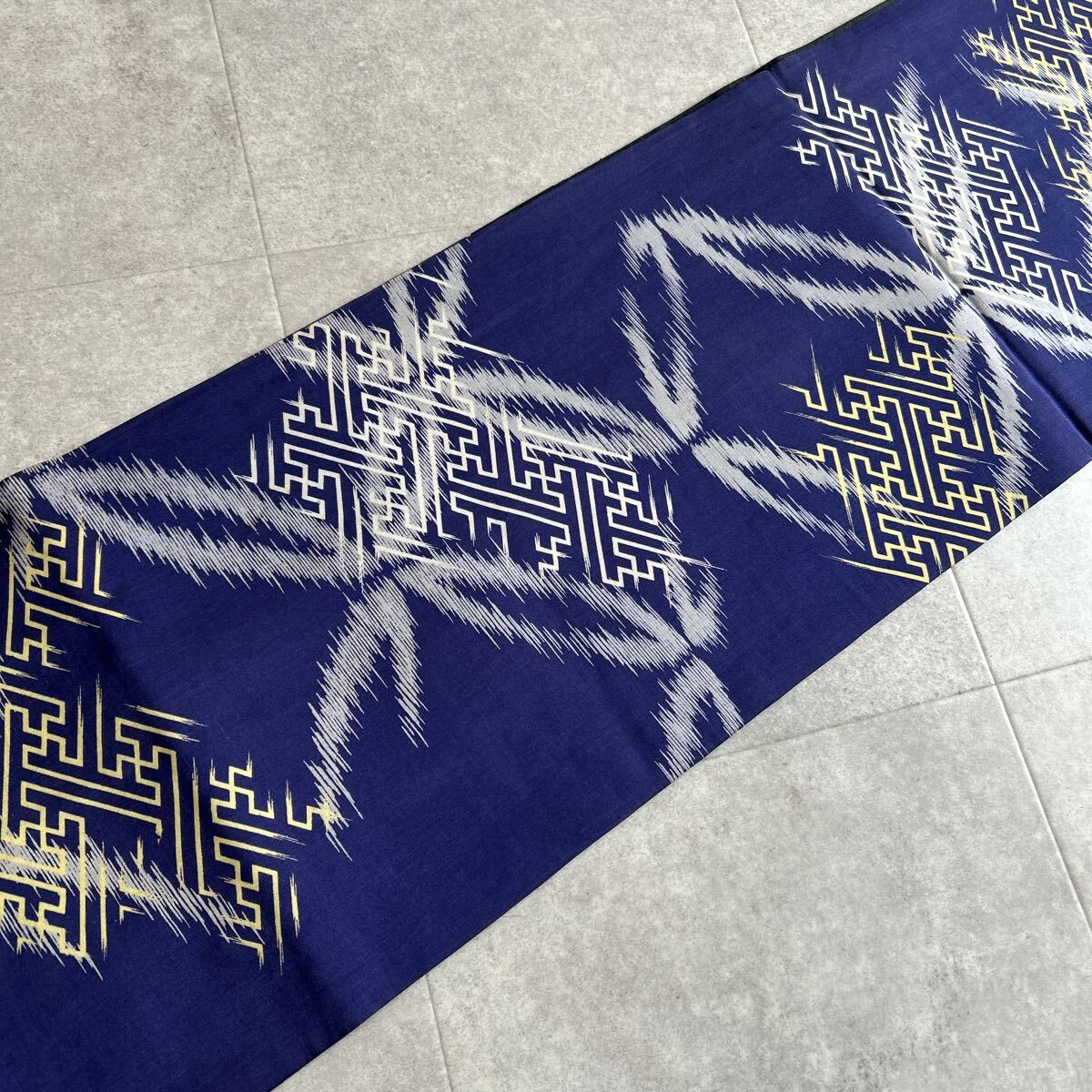 アンティーク 昼夜帯 着物 綸子 紺 黒 金陵 昭和レトロ 大正ロマン モダン 和洋折衷コーデ リメイク 25こ01-22t