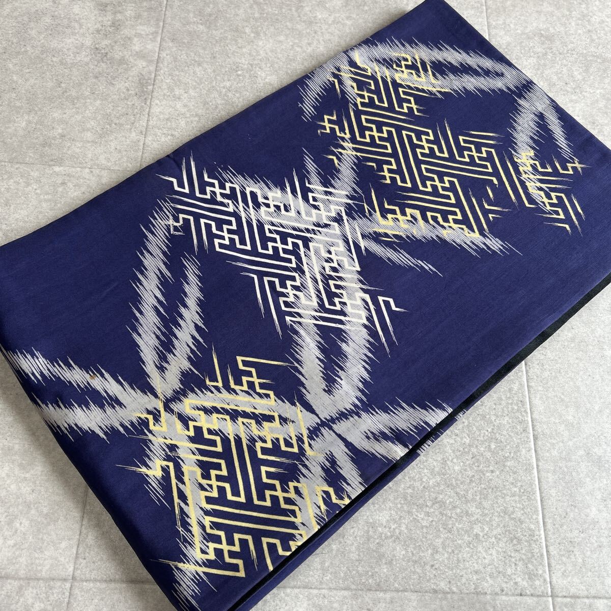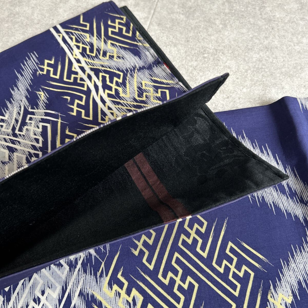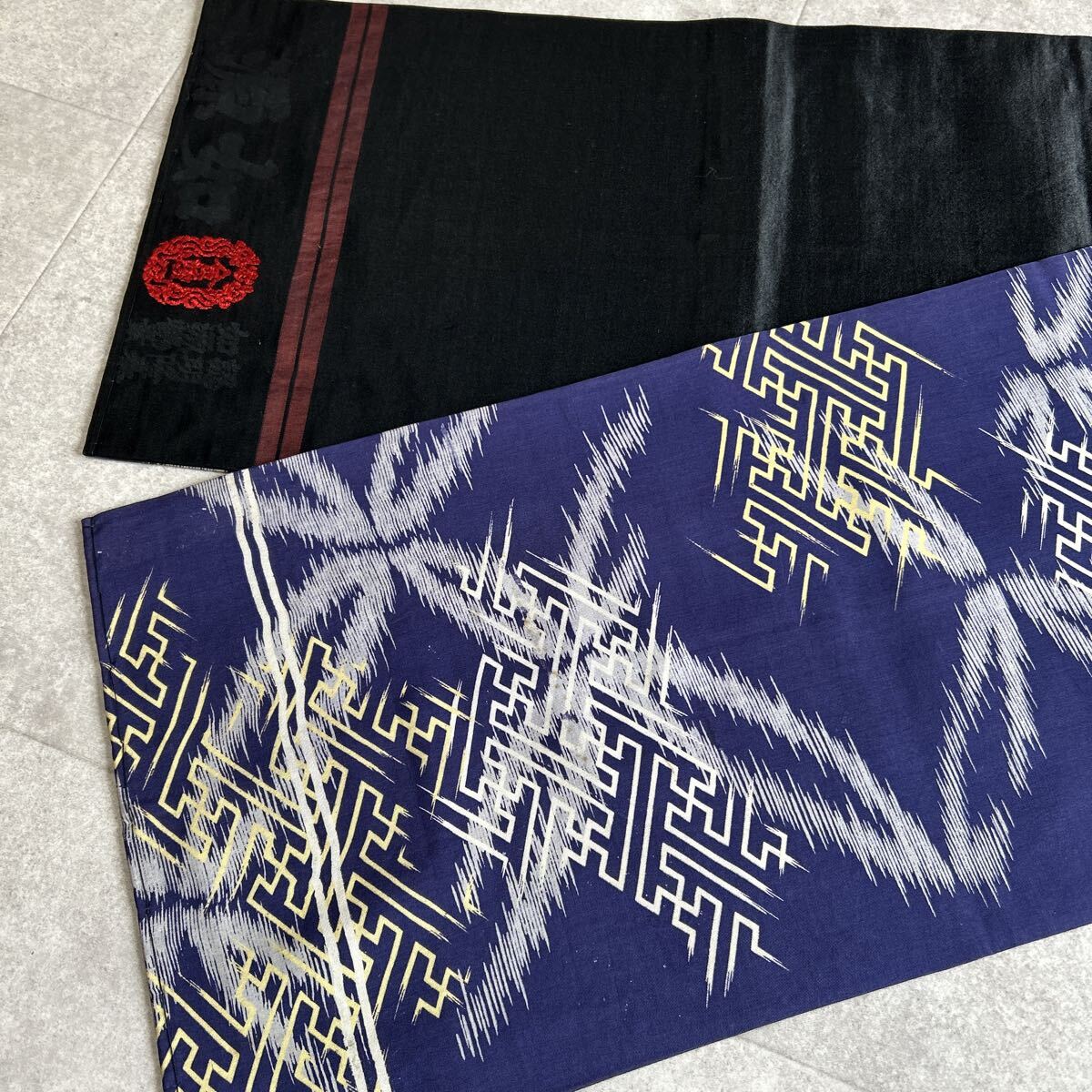 アンティーク 昼夜帯 着物 綸子 紺 黒 金陵 昭和レトロ 大正ロマン モダン 和洋折衷コーデ リメイク 25こ01-22t