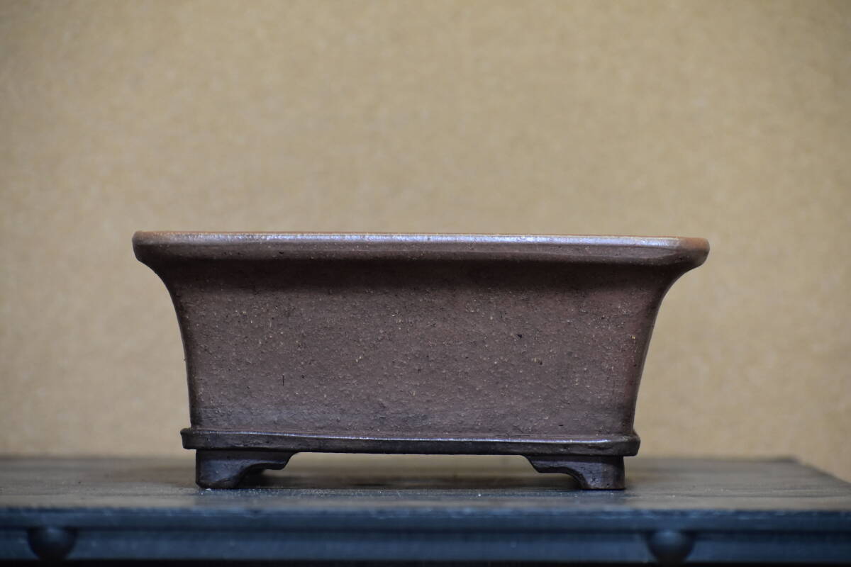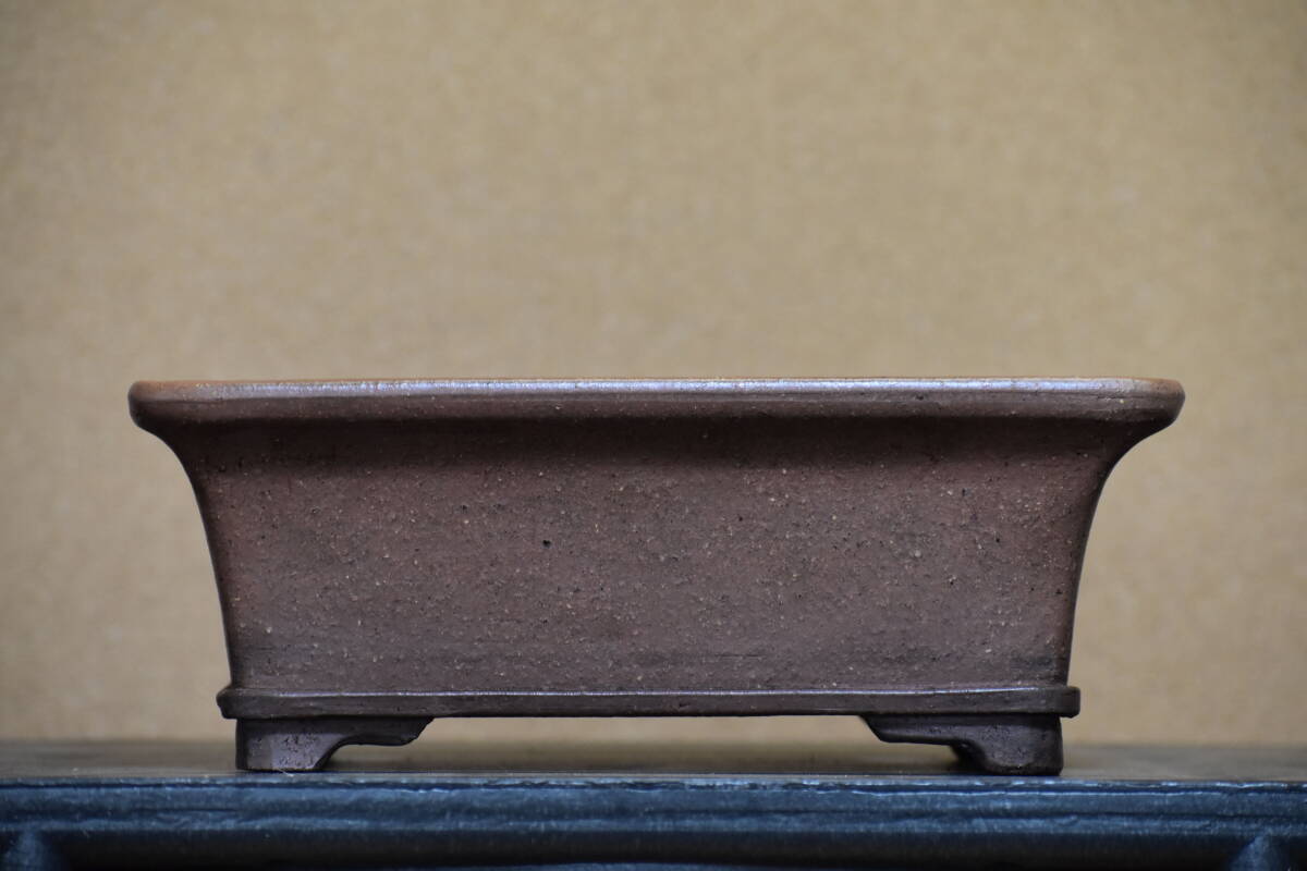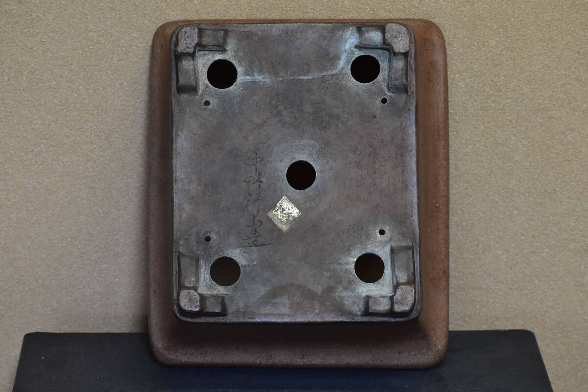 【中野行山】 手造り 外縁下帯段足長方鉢 間口27.4cm 人気和鉢作家 希少品 使い勝手の良いサイズ