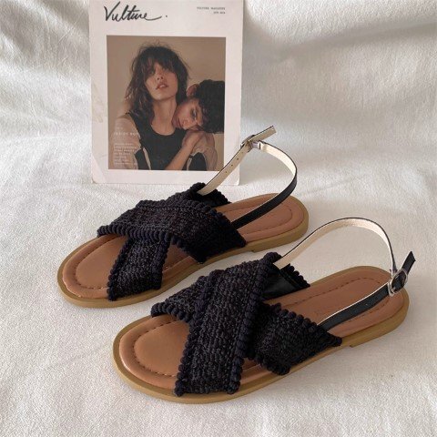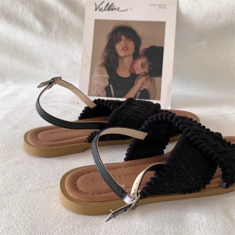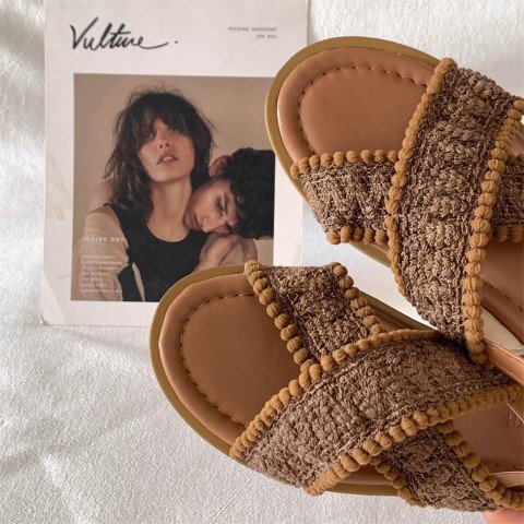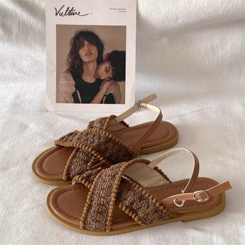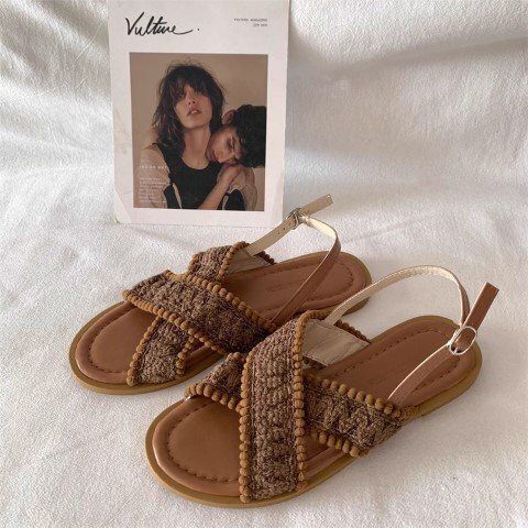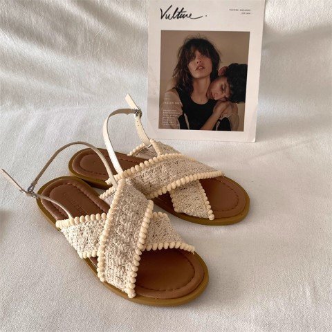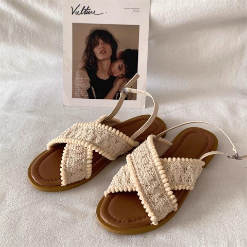 サンダル 民族風 ビーチシューズ レトロ フラット スリッパ 【37】23.5cm べージュ