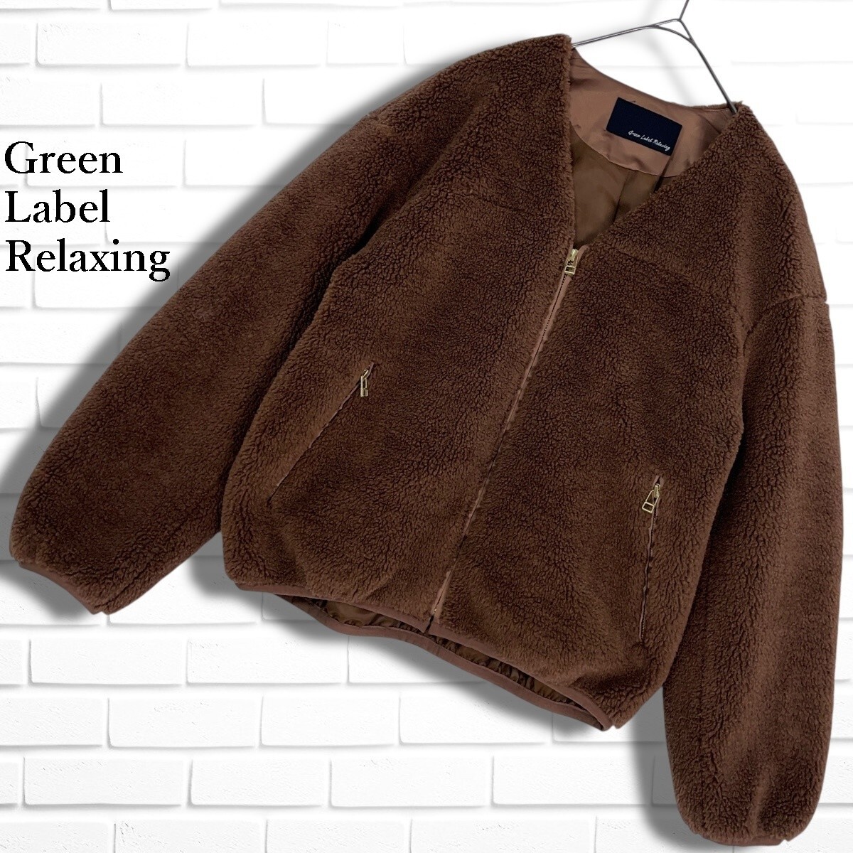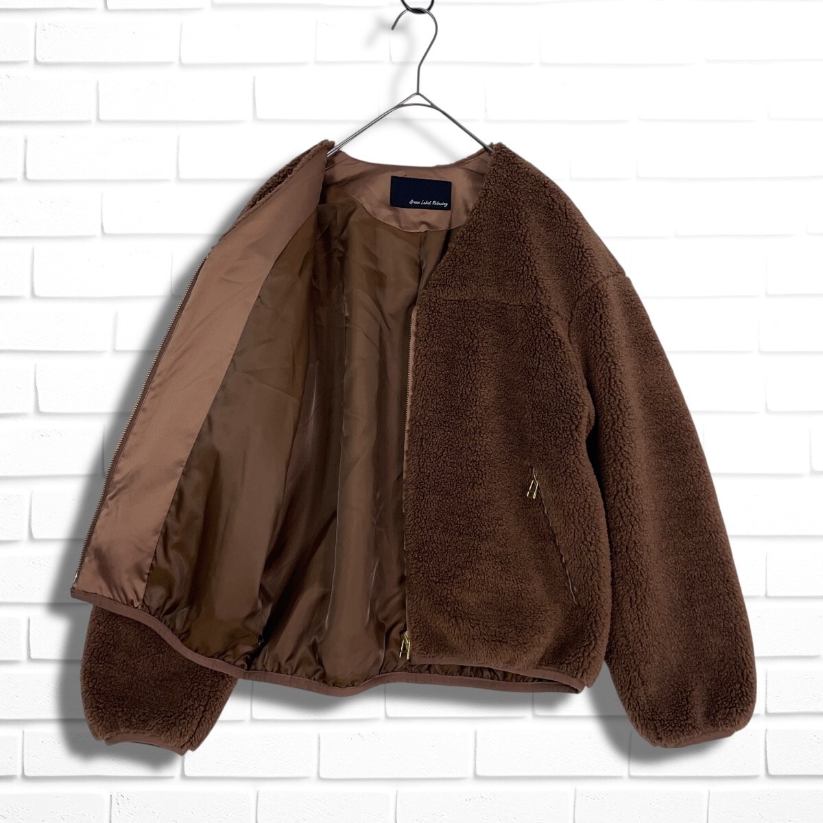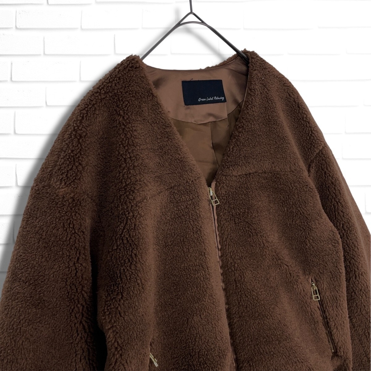 ◆美品◆ Green Label Relaxing グリーンレーベルリラクシング UNITED ARROWS ユナイテッドアローズ ボア ゆったり♪ ノーカラー ジャケット ブルゾン 茶 レディース ◆送料無料◆ 5365I◇