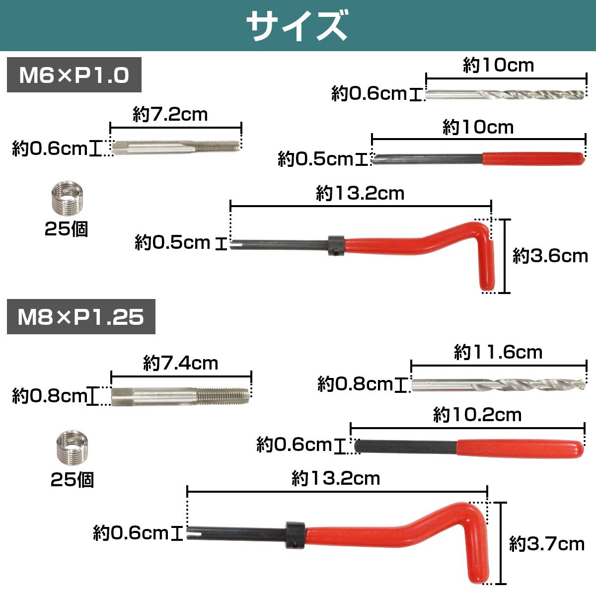 『M6×P1.0/M8×P1.25/M10×P1.5』リコイルキットセット ネジ山 修正 ドリル めねじ再生 ネジ穴 修復 補強 雌ネジ 補修 工具
