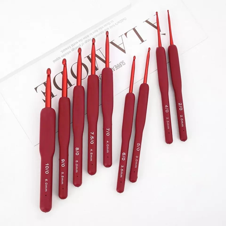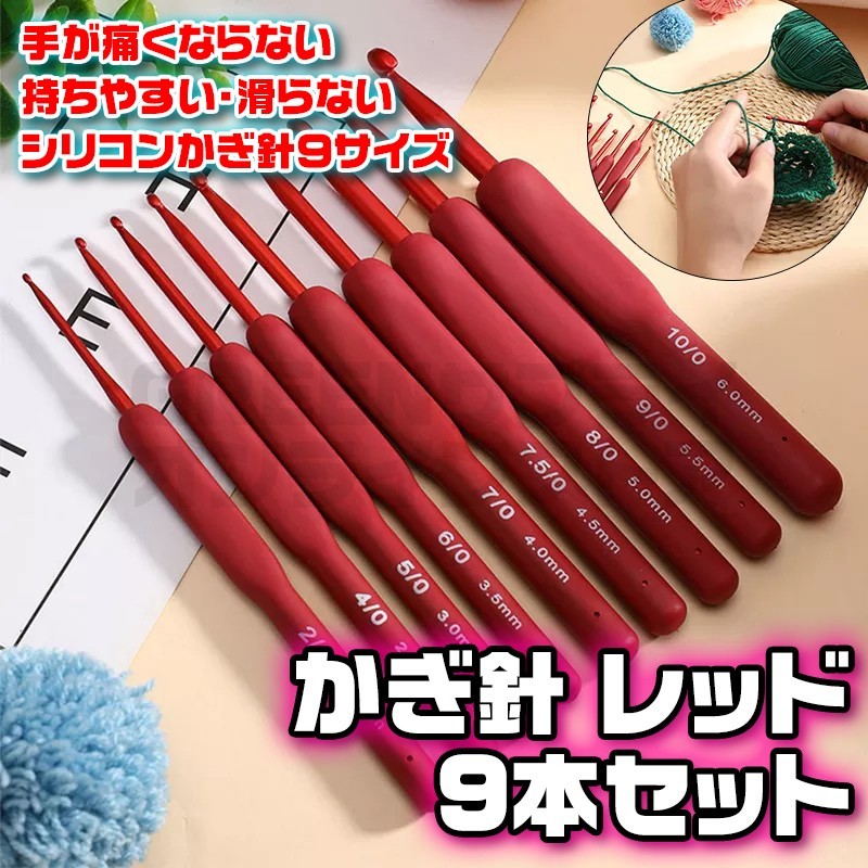 滑らかな肌触りと人間工学に基づいた設計で、手への負担が少ないシリコン製の かぎ針 9サイズ 9本セットです。
