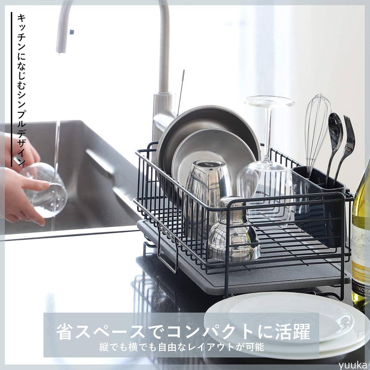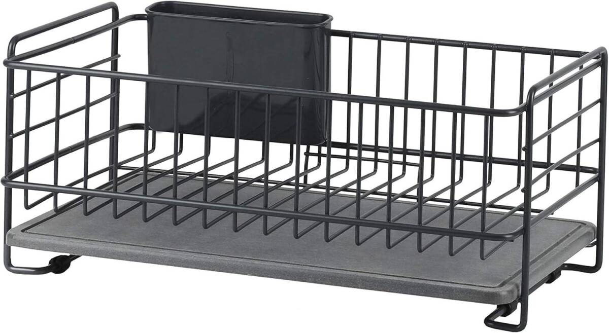 パール金属 鉄 食器 水切り かご バスケット スリム ダークグレー 珪藻土トレー付 AZ-5510
