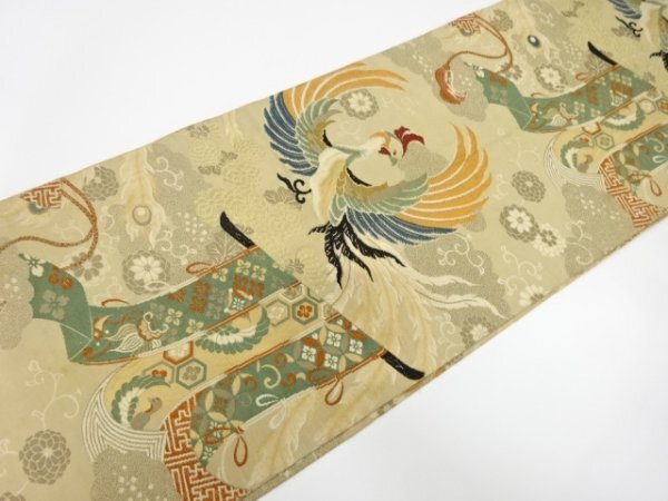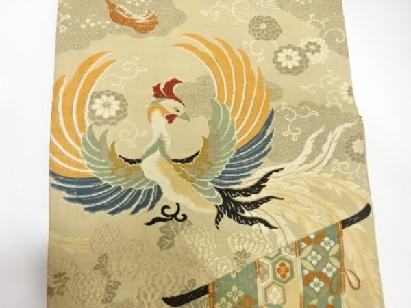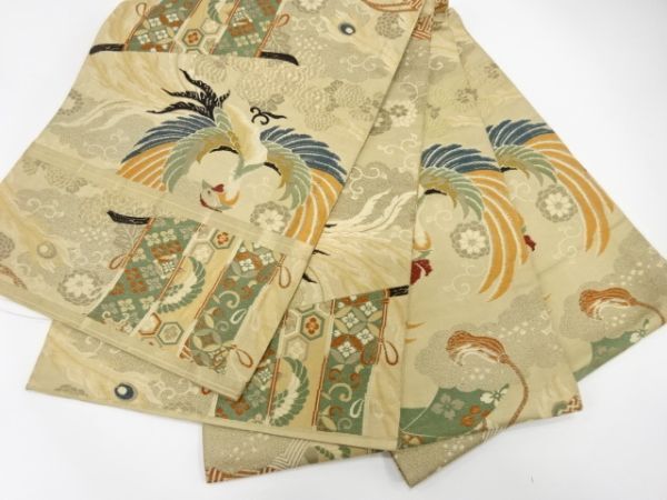 ys7539587; 几帳に鳳凰模様織出し丸帯(材料)【アンティーク】【着】