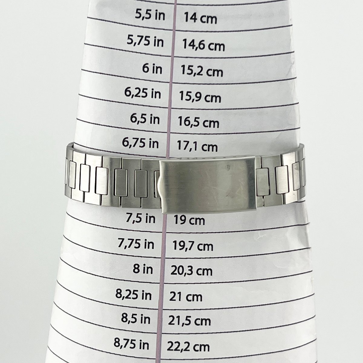 商品説明 | サイズ 腕回り:約 18cm ケース径:約 37mm 付属品:画像に写っているものが全てとなります。 状態ランク:B 小傷あり ・S:新品未使用 ・A:使用感の少ない美品 ・B:通常使用可能品 ・C:ダメージが目立つが使用可能な品 ・D:ジャンク品(動作未確認品含む) 【注意点】 ご使用のモニターなどにより写真と実際の色目が若干異なる場合がございますのでご了承下さい。 状態は主観になります。当店で扱うものは二次流通品のため、最高でも未使用品となります。完璧を求める方はご遠慮下さい。 稼働商品に関しましては出荷時の状態での判断です。長期の動作保証は致しかねます。 (手巻き・自動巻きの稼働確認は出荷時に3時間行っております。) |