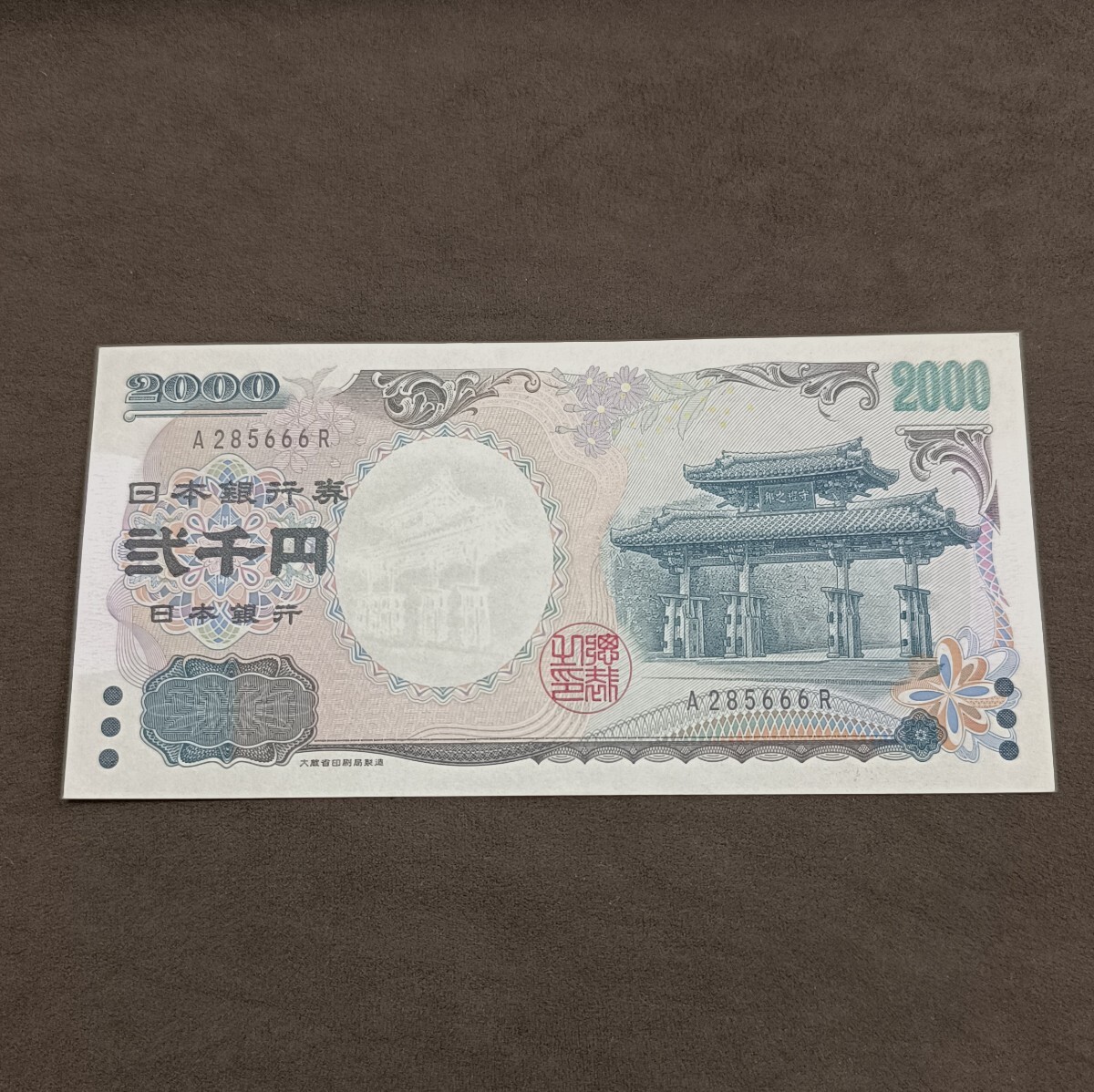 二千円札 2000円札 ピン札 アルファベット 1桁 A番 A285666R