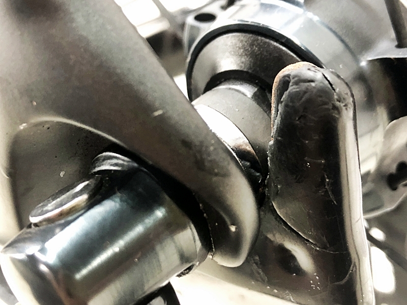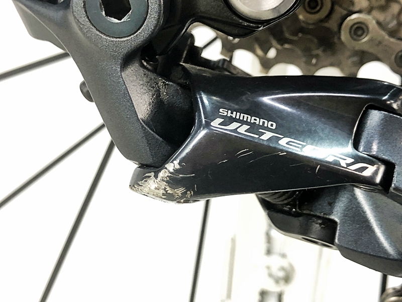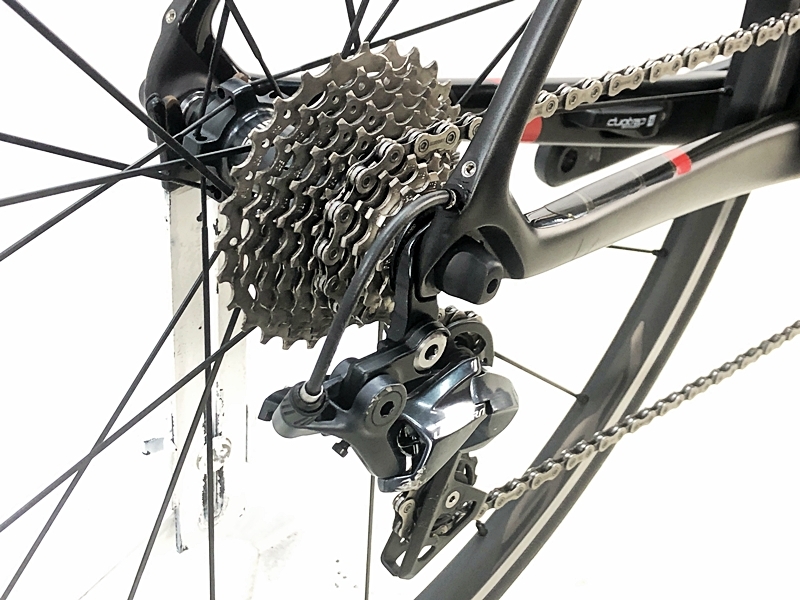 フレーム、その他外観:左フレームエンド、シートチューブのマストキャップ被さり部、左右フォークエンド、クランク、リアディレイラー、STIレバー、ホイール、サドルにキズがあります。フレーム各部に小キズがあります。