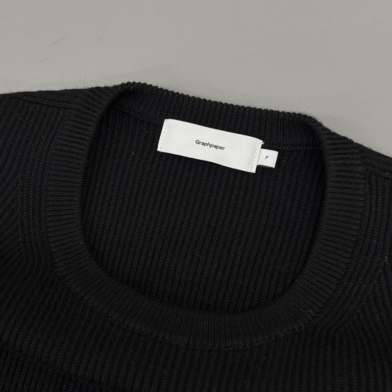 グラフペーパー GU213-80009B High Denstly Crew Neck Knit 厚手 クルーネック リブニット セーター 黒 ブラック FREE
