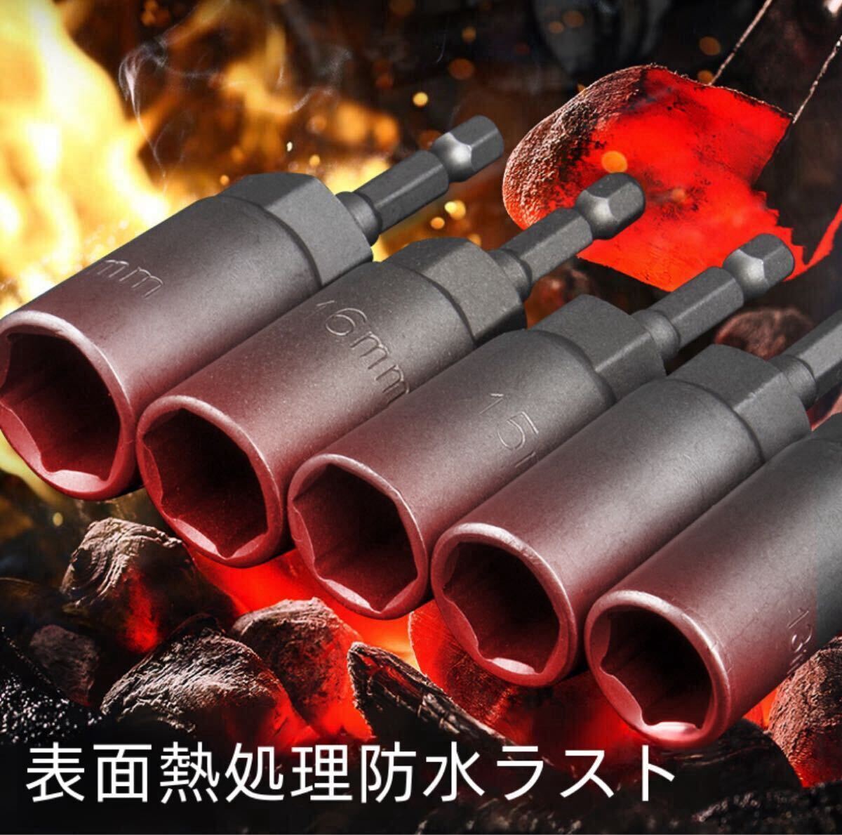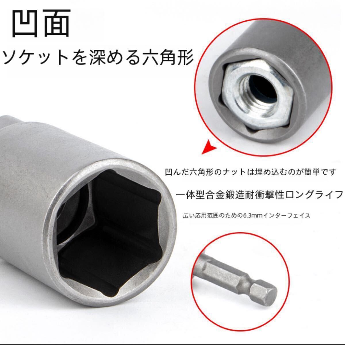 全長約80mmのロングソケットアダプター10本セット、広範囲なサイズに対応。