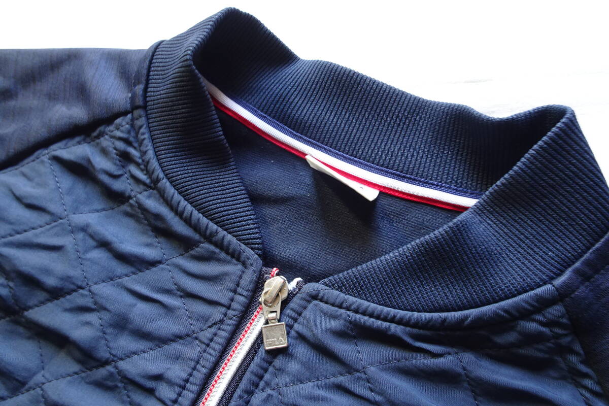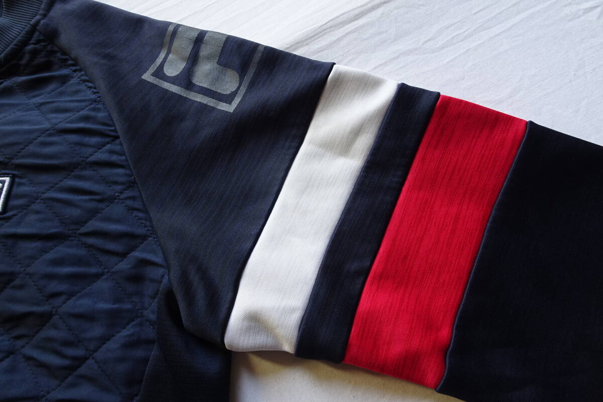 FILA/フィラ/FL-9A25098TJ/ブルゾン/ジャンパー/アウター/前ジップアップ/キルティングステッチ/赤白ライン/紺/ネイビー/Lサイズ(10/1R7)