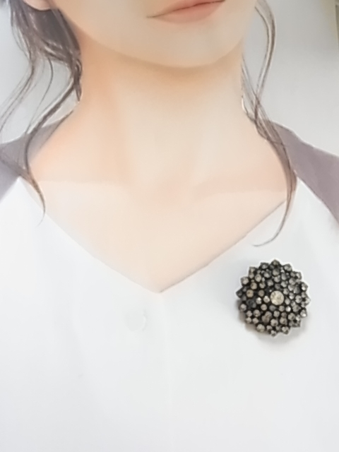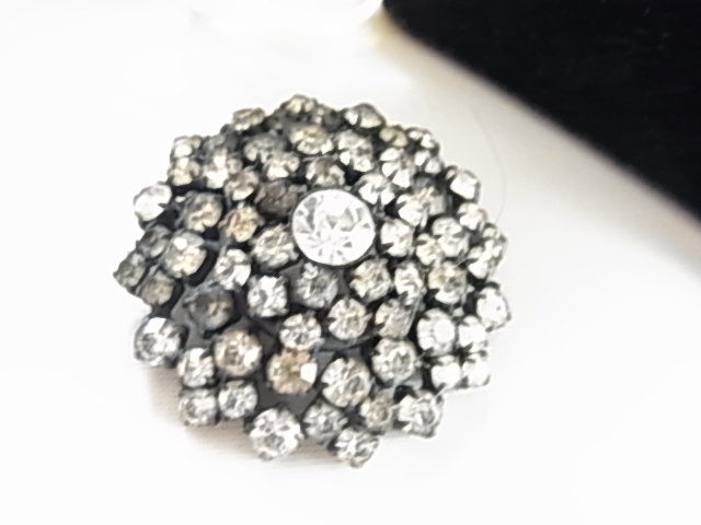 ビンテージ/ヴィンテージ シックな色味 キラキラ系 ラインストーンが輝くビジュー クリアと何か少し色が付いている石 ブローチ※