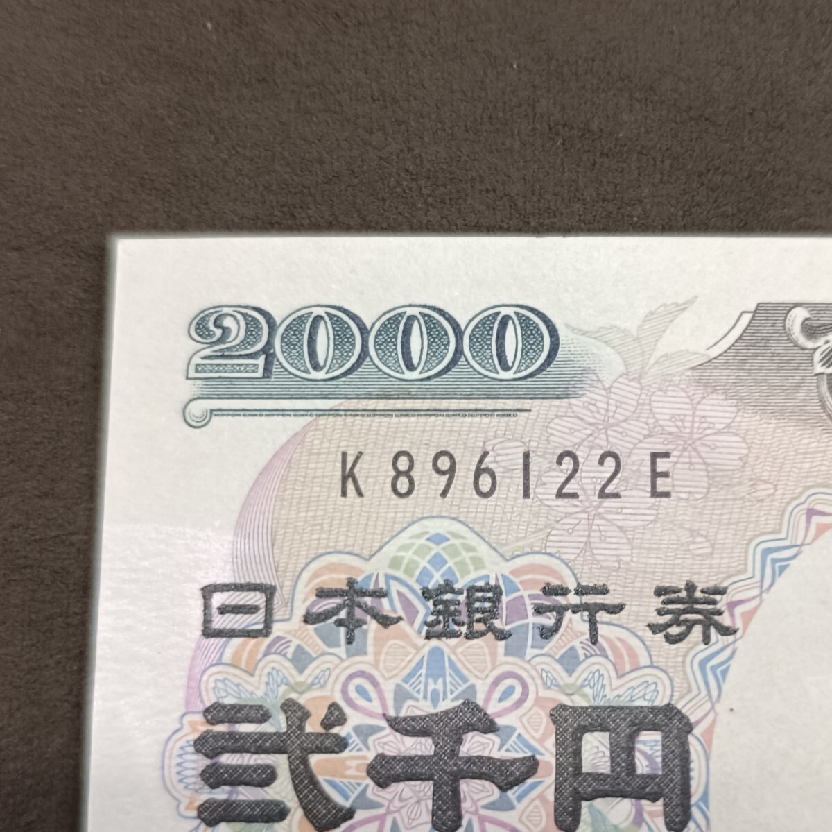 二千円札 2000円札 ピン札 アルファベット 1桁 K番 K896122E