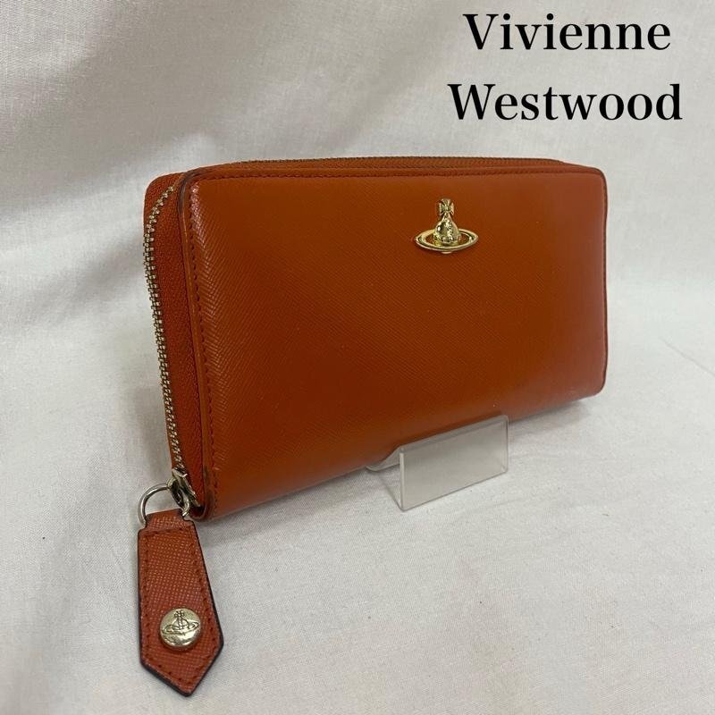 ヴィヴィアンウエストウッド 長財布 オーブロゴ ラウンドジップ orange 表記無し