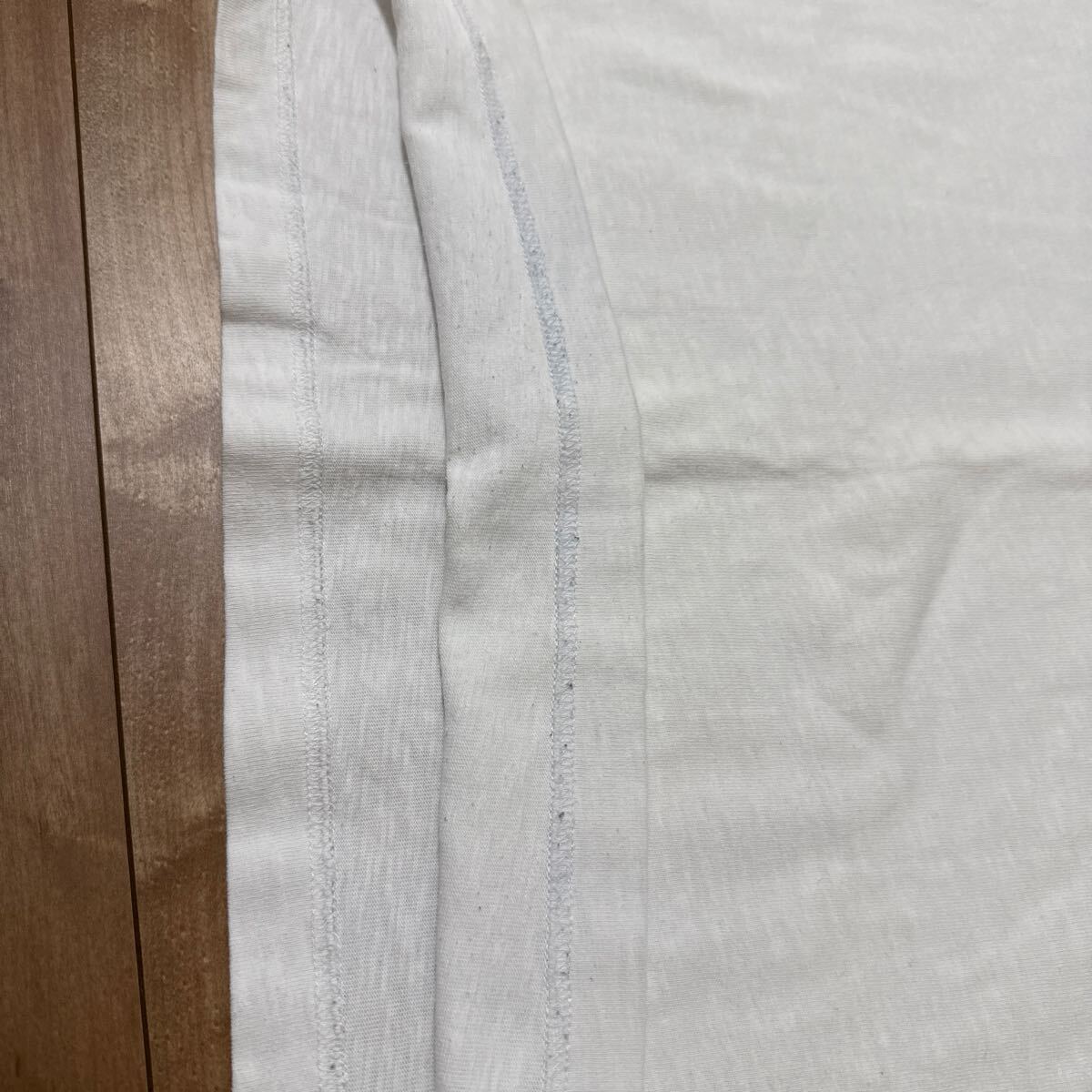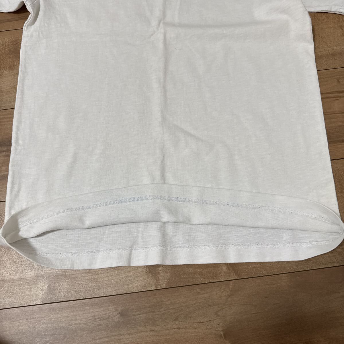 後ろの裾裏にデニムの色移りが少しあり、青くなってしまっています。着てる分には全然気にならない程度となります。