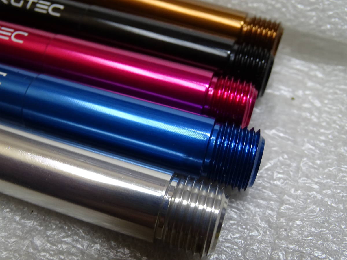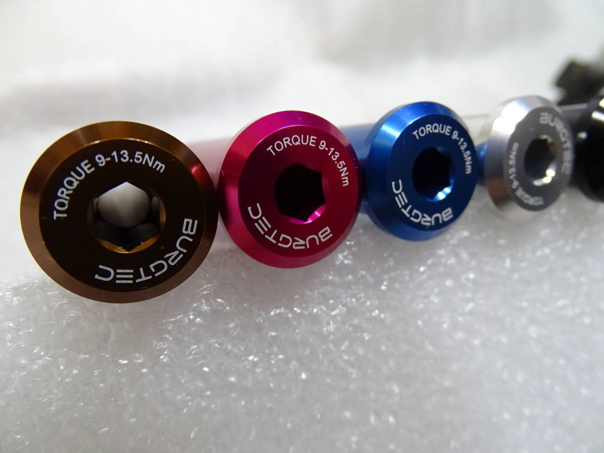 | 説明 | 新品 BURGTEC ROCKSHOX 用 アクスルシャフト15x110mm (ブースト規格)アクスルシャフトになります。 六角レンチで締め込むタイプなので、クイックタイプからの軽量化にいかがです! サイズ:15×110mm スレッドピッチ:M15x1.5 カラー:ゴールド、黒、、 (ブルー レッド、シルバー品切 ) 必要な種類を指定してください。 ●重量:実測約65g ●状態:未使用 |