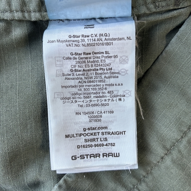 C39◇G-STAR RAW | ジースターロゥ 長袖シャツ スモーキーグリーン メンズ XSサイズ 中古品