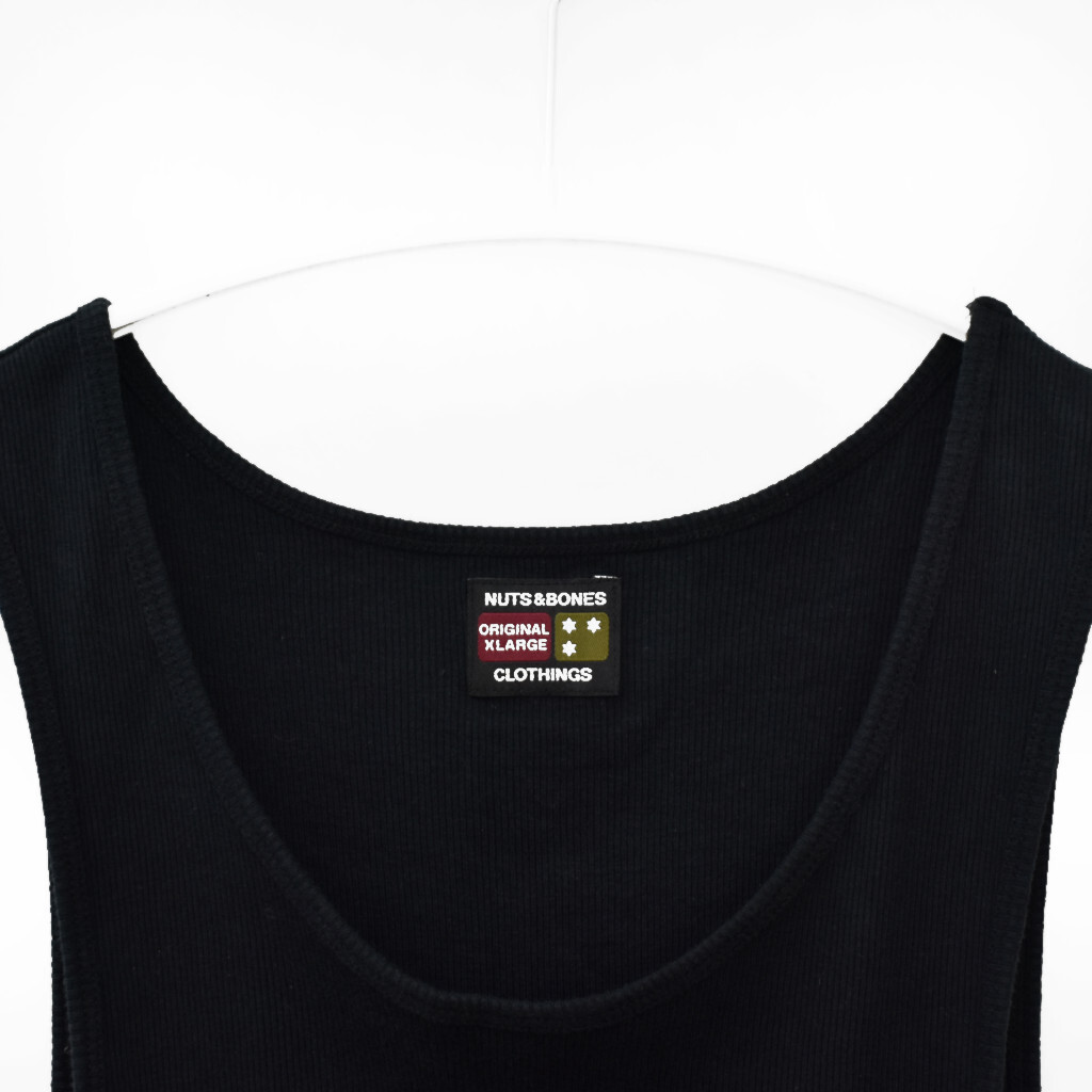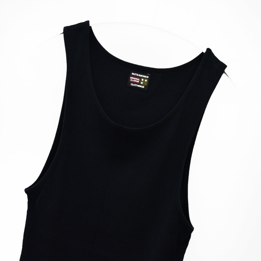 良品 nuts and bones ナッツ&ボーンズ リブ タンクトップ 黒 クラウン刺繍 XL メンズ