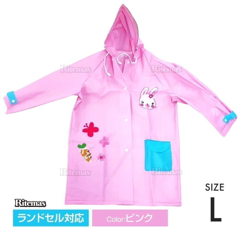 レインコート ランドセル対応 反射テープ 収納袋 子供用 かっぱ 雨合羽 子ども リュック 幼稚園 保育園 小学校 低学年 ピンク Lサイズ