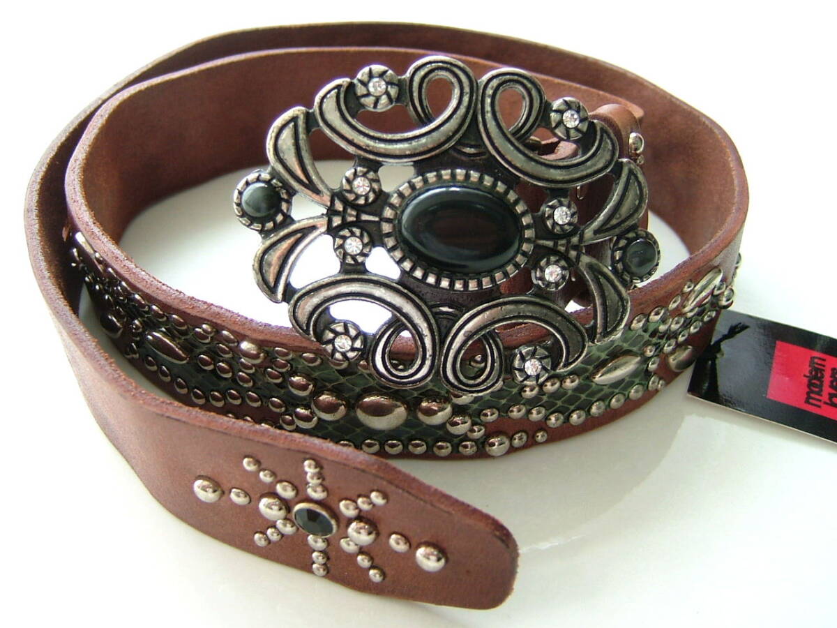 1.9万 新品 モダンラヴァーズModern loversレザー本革スタッズベルト パイソン蛇ヘビ本革装飾 メンズ 102