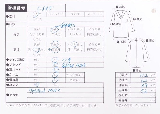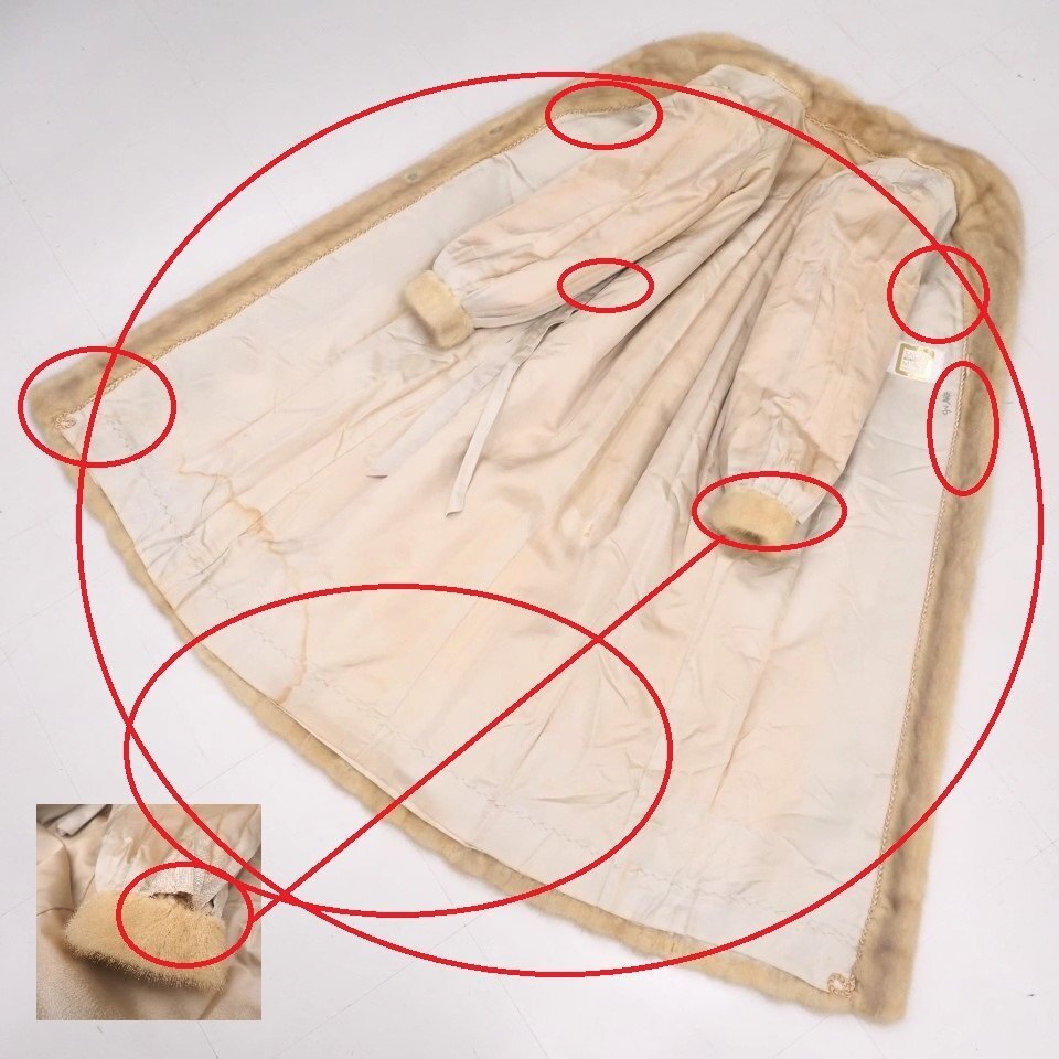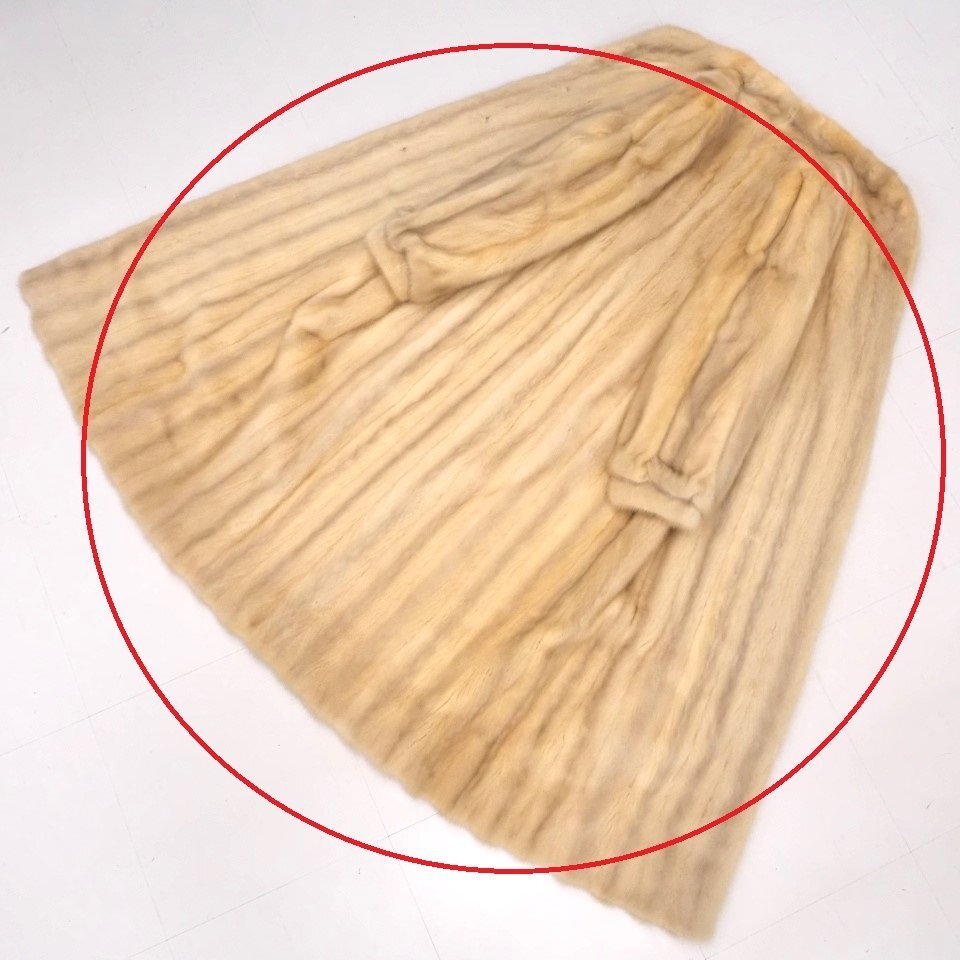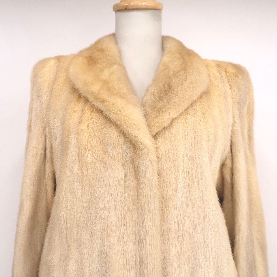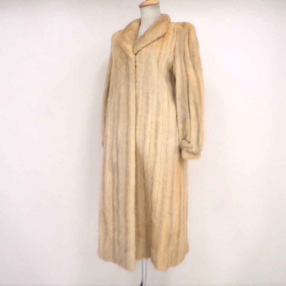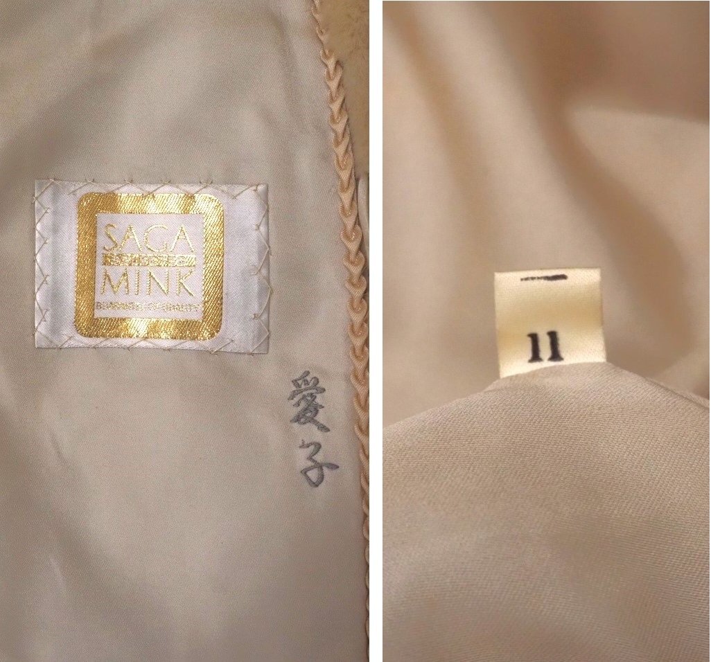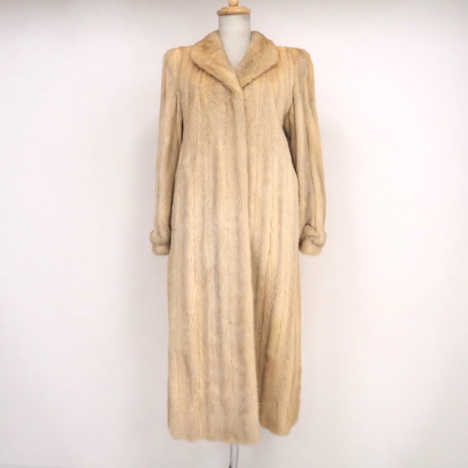 高級毛皮【 金 SAGA MINK ★ ¥1000~ / 大き目サイズ 】 ◆ヴァイオレットミンク ◆超ロング丈 112cm ◆ライトクリーム ◆11号 ◆C835