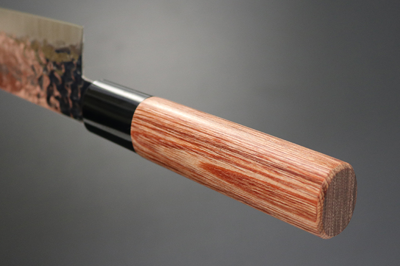 耐水性にも優れた赤合板丸柄は、握った感じも手に心地よい包丁です。